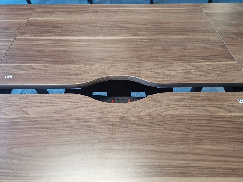 This modular 10‑person office bench desk in walnut effect finish is perfect for collaborative spaces, co‑working environments, and open‑plan offices. Designed with flexibility in mind, it can be configured as a 2, 4, 5, 6, 8, or full 10‑person workstation by simply adding or removing extension frames.
