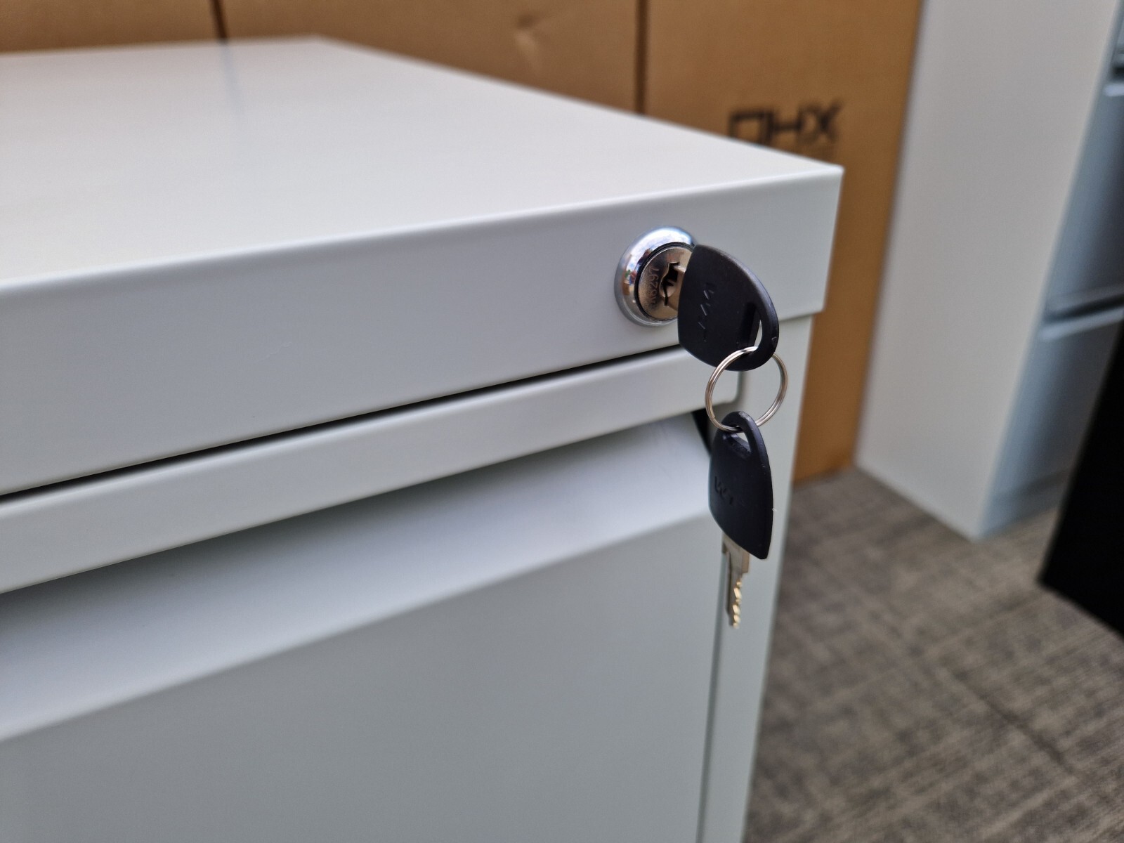 The reinforced frame makes the cabinet more stable, while the anti-dumping mechanism ensures only one drawer can be opened at a time to avoid the cabinet tipping over. The drawers are lockable with a discreet lock in the top right-hand corner.