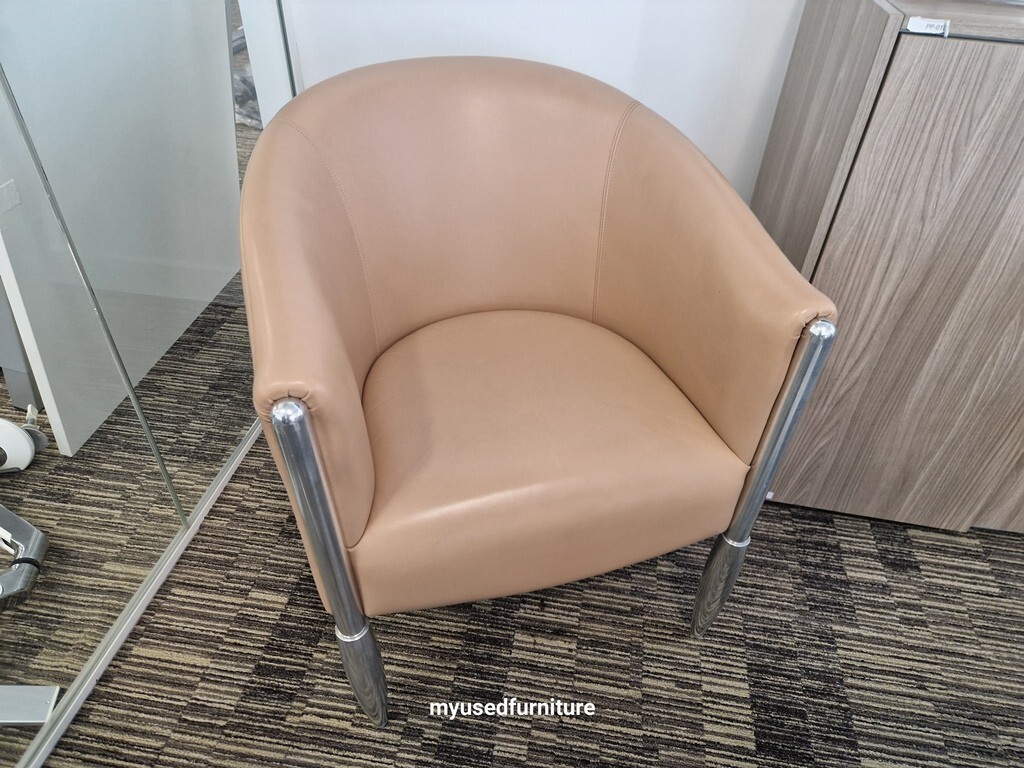 A premium pair of KOINOR lounge armchairs in white genuine leather, offering modern styling and supportive comfort for reception areas, living rooms and office lounges.