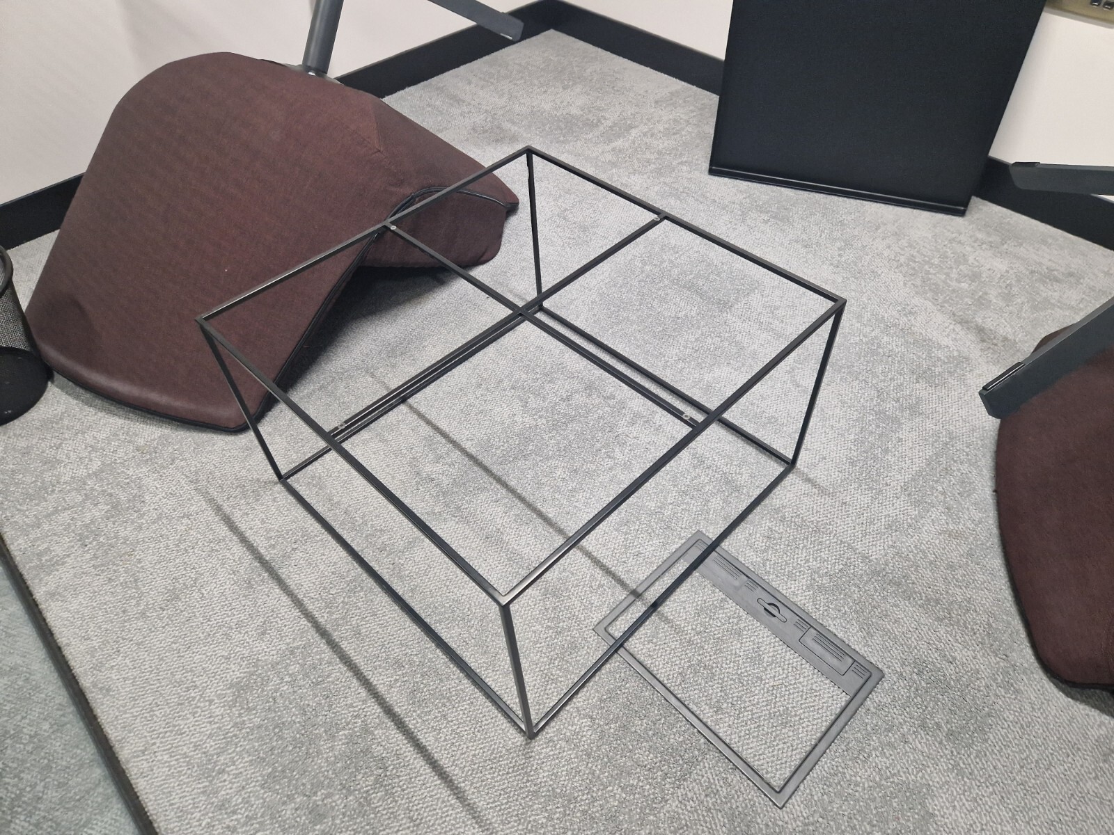 Medium Coffee Square size: 60 × 60 cm, height ~35–39 cm. Made of powder-coated steel—versatile and lightweight. Retail price approx £235 (RRP).