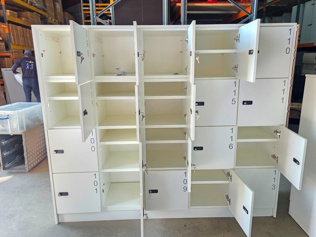 🔐 20 Door Locker Storage Unit – White with Combination Locks & Adjustable Shelves