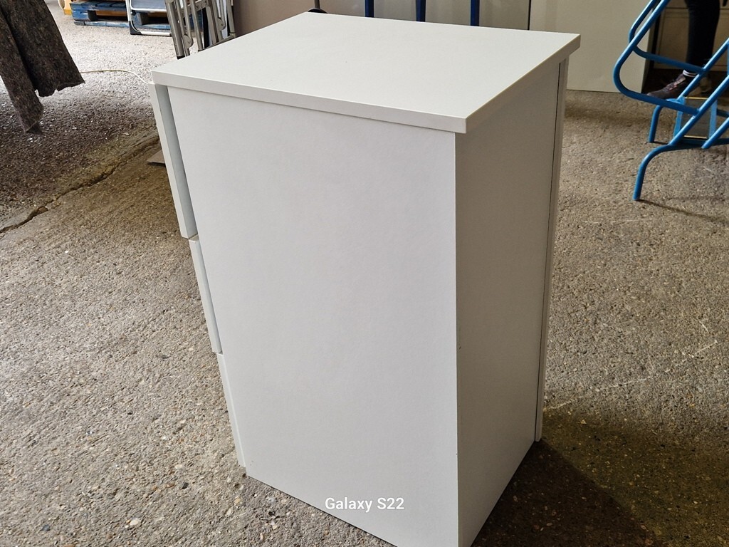 A practical and professional white 3 drawer filing cabinet, ideal for offices, home workspaces, study rooms or anywhere that needs secure and organised document storage.