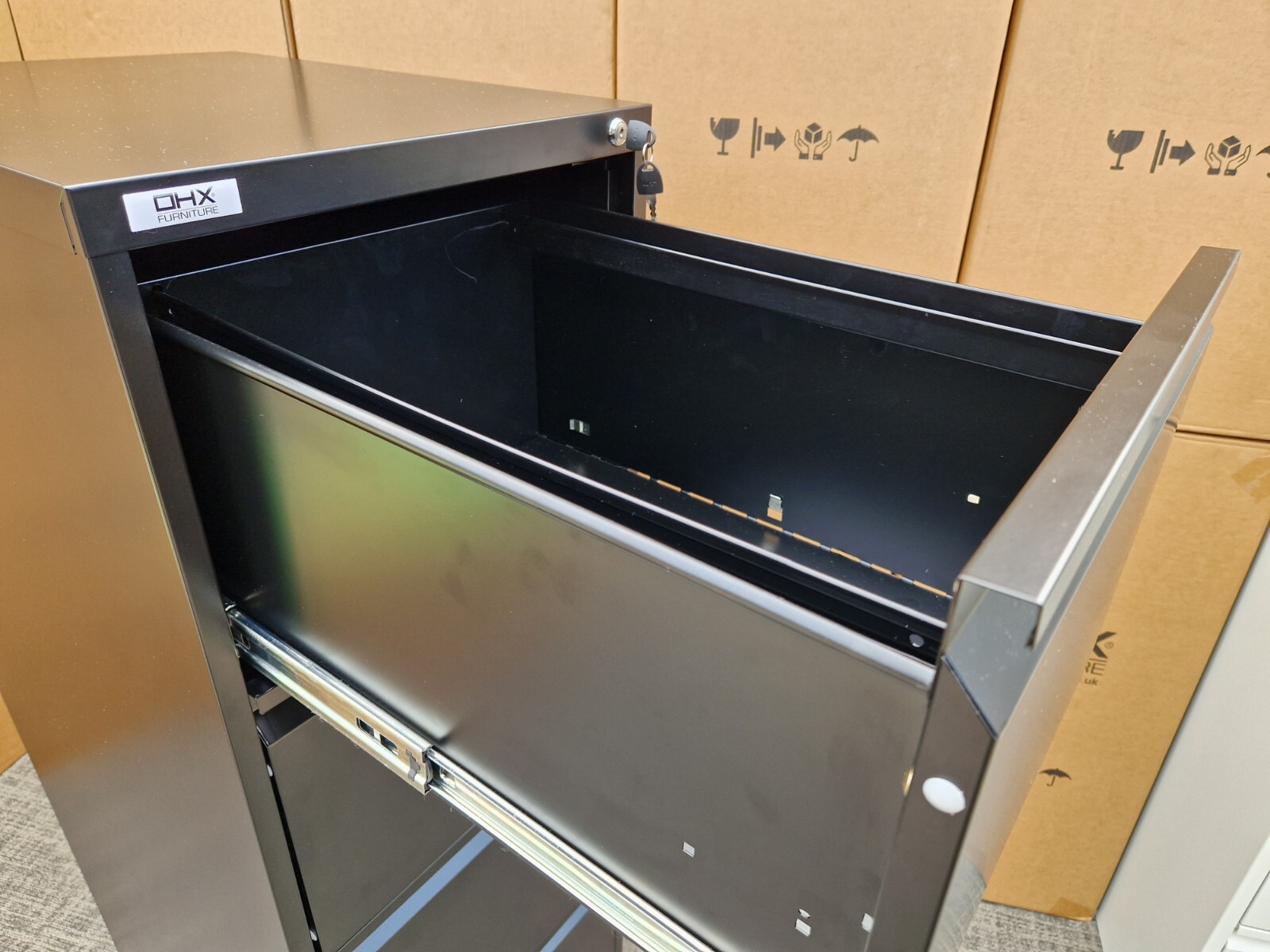 Formaldehyde-free and odour-free, our cabinets are made from a steel base, anti-rust layer and powder coating, giving you the highest metal quality available. That’s not all. While most metal filing cabinets are sold between 0.6mm and 0.7mm thick, OHX Furniture filing cabinets are 0.9mm thick. They are made to be 0.8mm thick before coating and go up to 0.9mm after coating and painting.