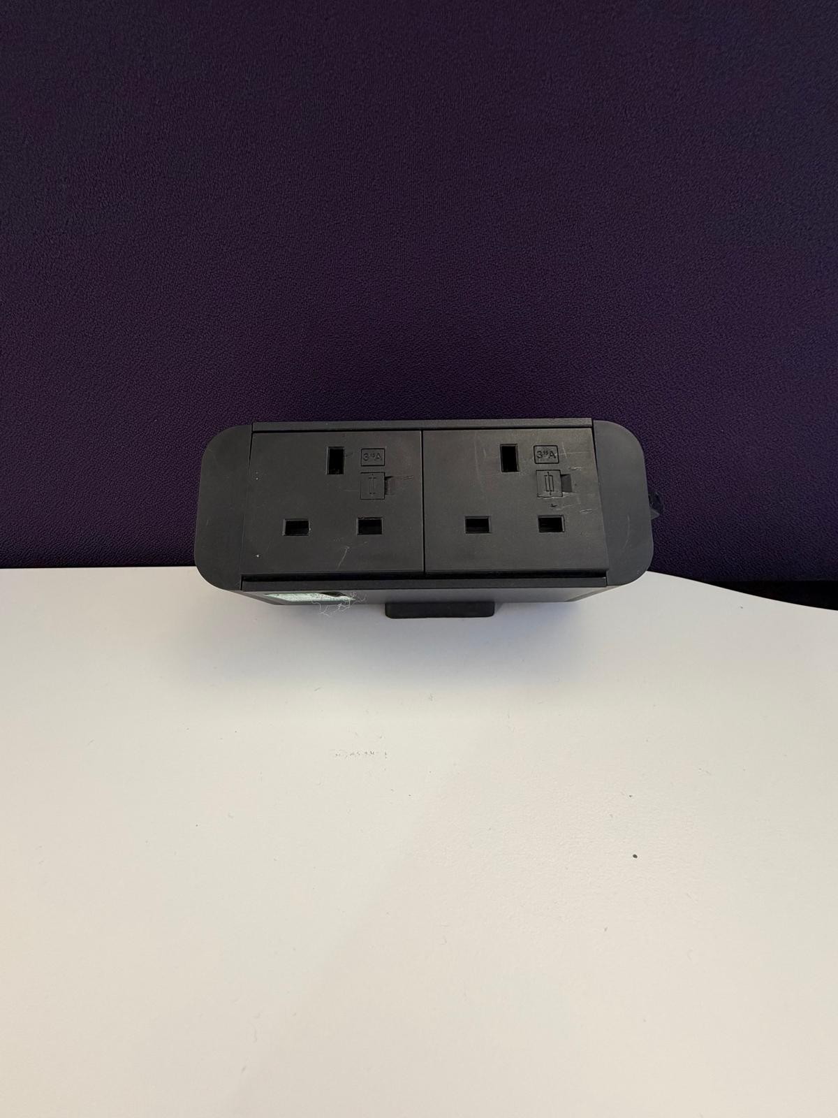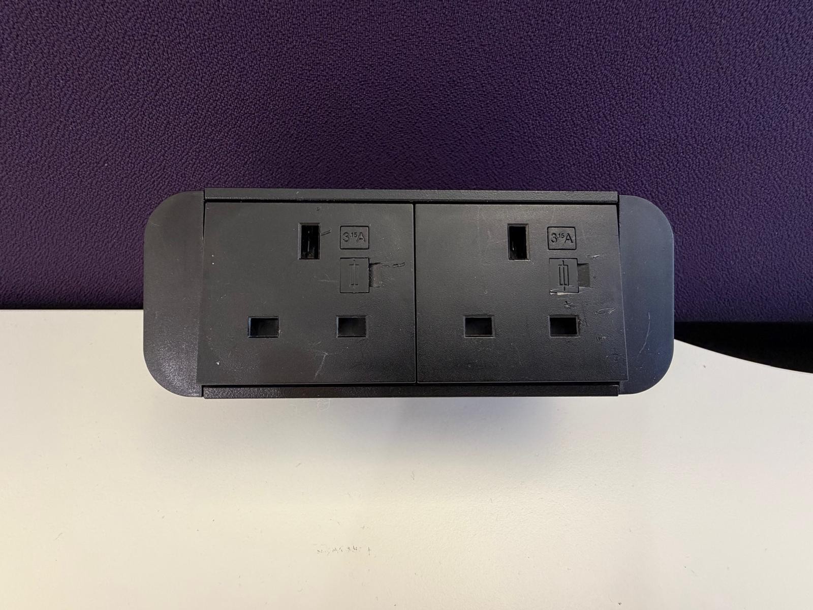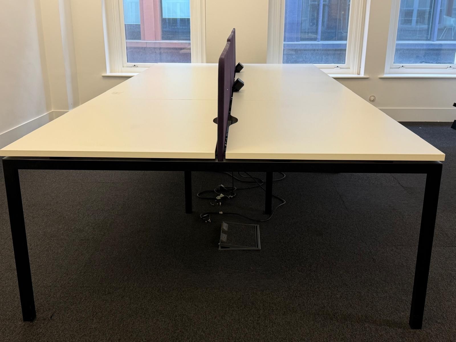 Large 6-person bench desk ideal for open-plan offices, co-working or call-centre setups. Includes 3 divider screens and integrated UK power modules (see photos).