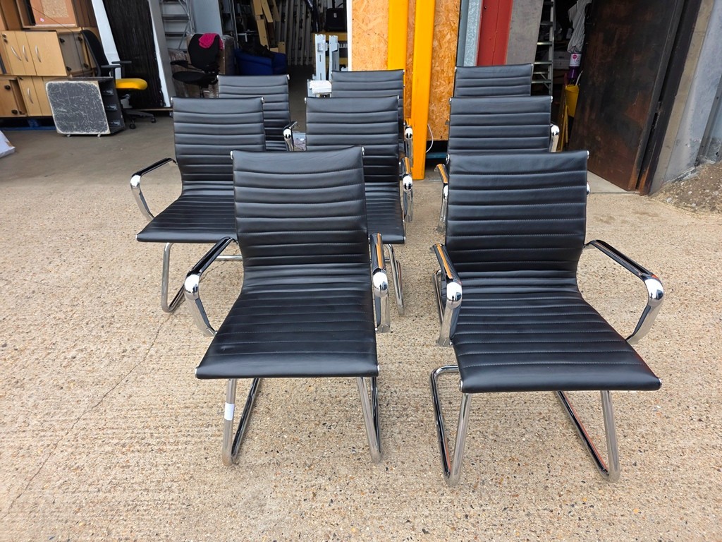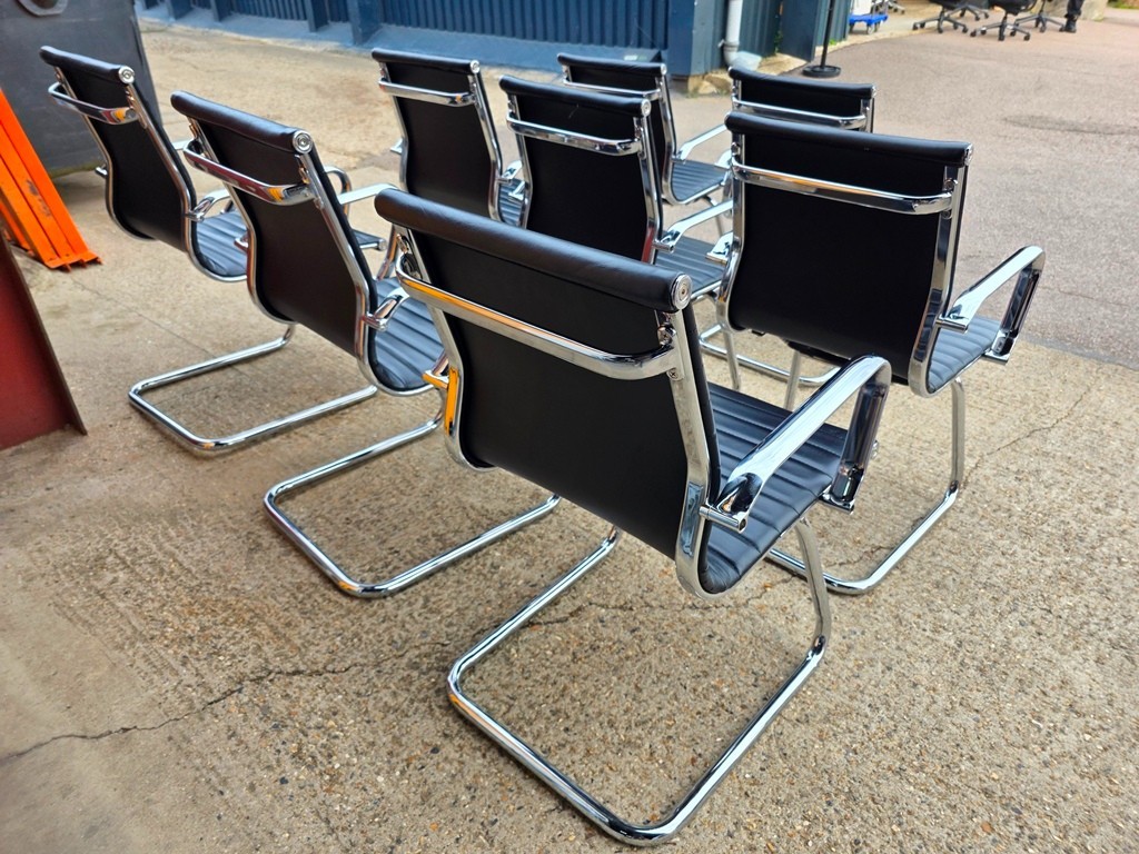 Aria A AMCA Black Faux Leather Cantilever Meeting Chairs – Set of 8