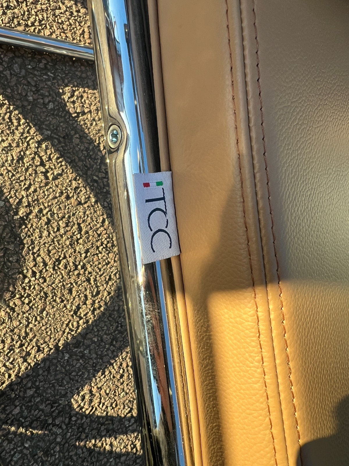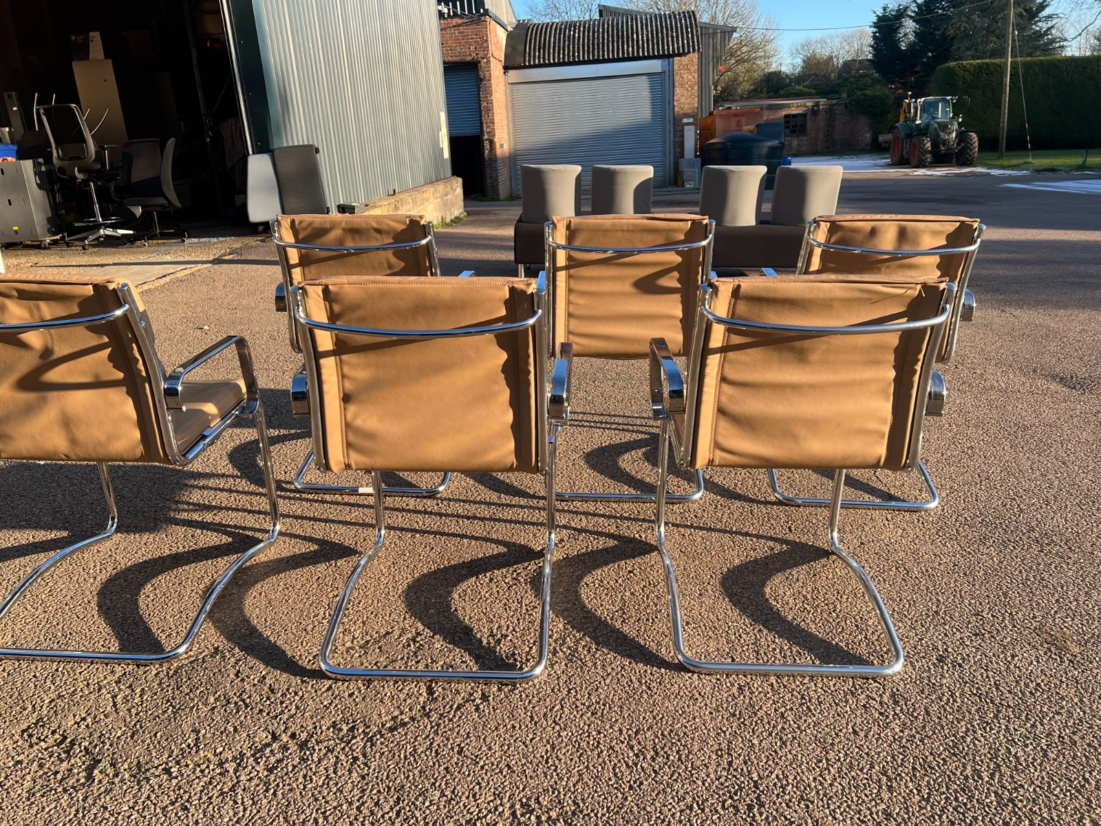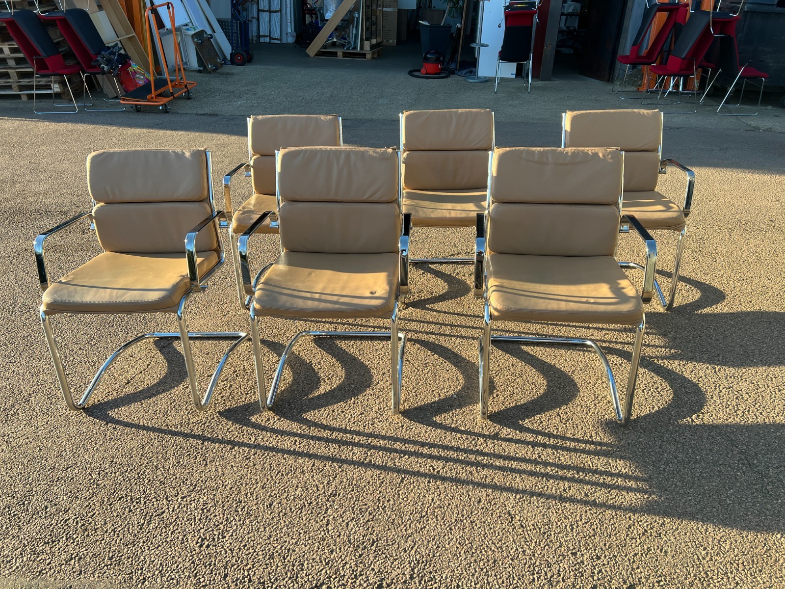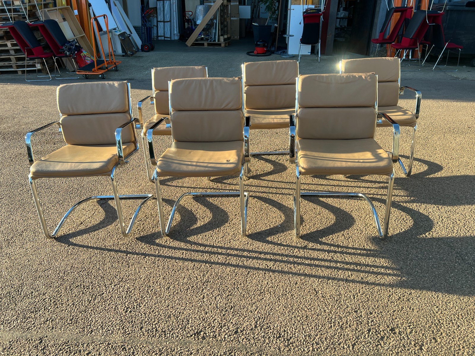 Set of 6 Cantilever Visitor/Dining Chairs (Beige) – Upholstered + Polished Metal Frame
