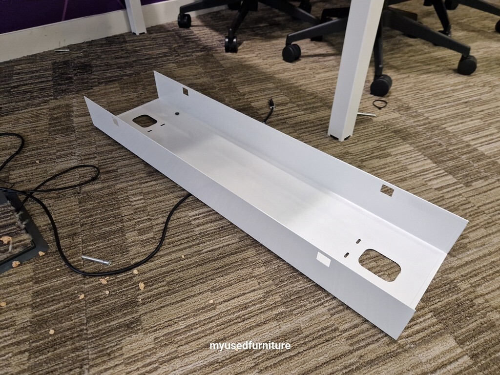 Central steel cable tray keeps wires tidy and out of sight