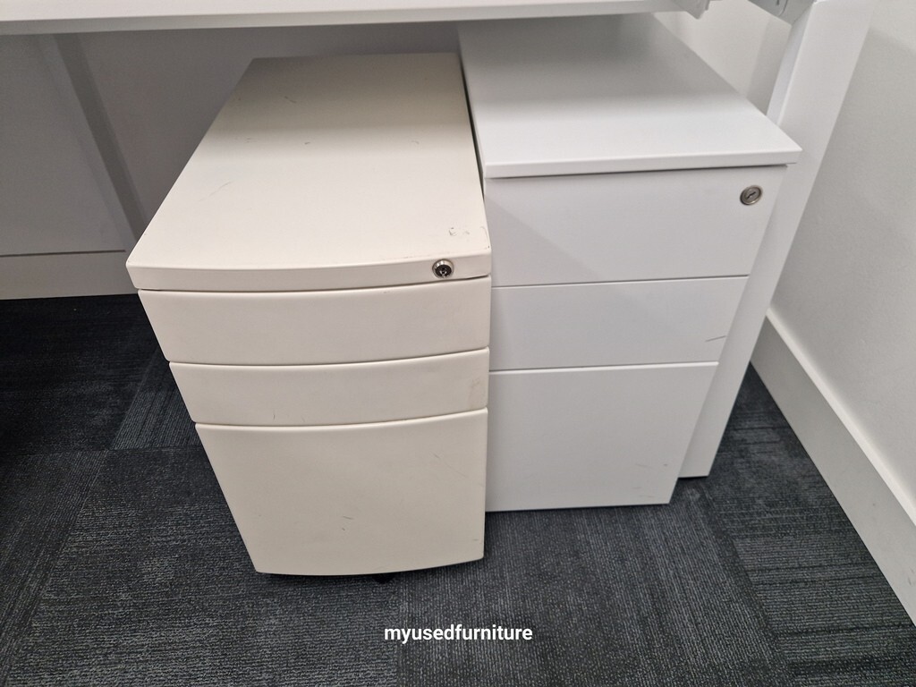 2 × Slim mobile pedestal cabinets (models may vary – please check before purchase; lockable, no keys supplied – replacement keys available at FastKeys for approx. £3 each using the lock code)
