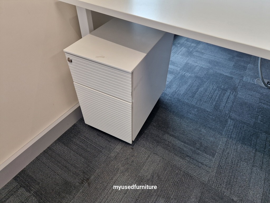 Create a modern, collaborative workspace with this high‑quality Bene white 2‑person office desk, complete with 2 matching slim lockable mobile pedestal cabinets and a heavy‑duty power extension with USB ports. Perfect for shared offices, team environments, or co‑working spaces.