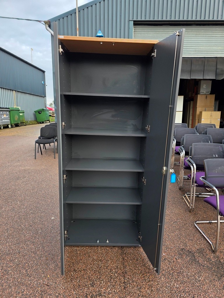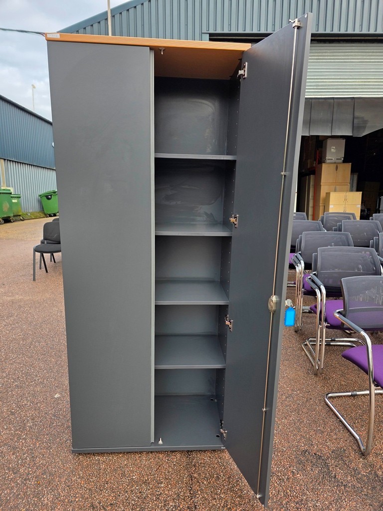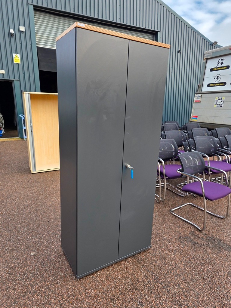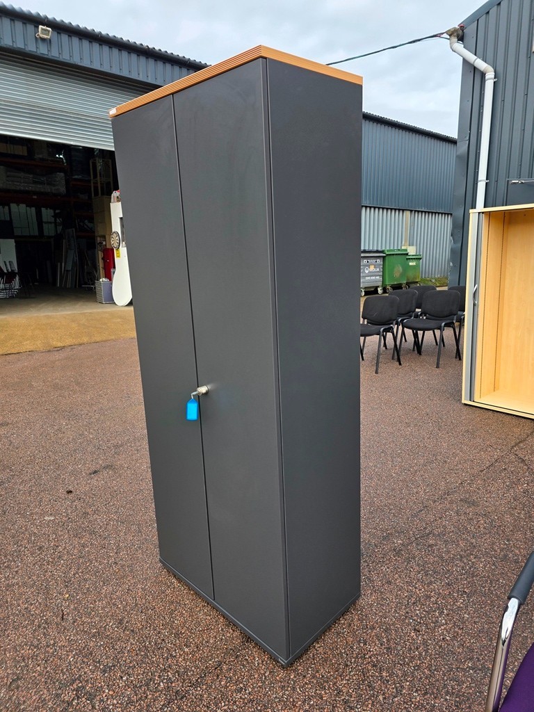 🗄️ Bene Lockable Office Storage Cupboard – Graphite Finish with Wood Top (194 × 80 cm) ; O-3585