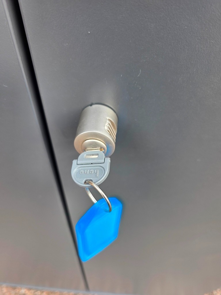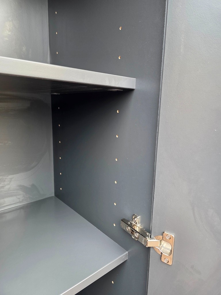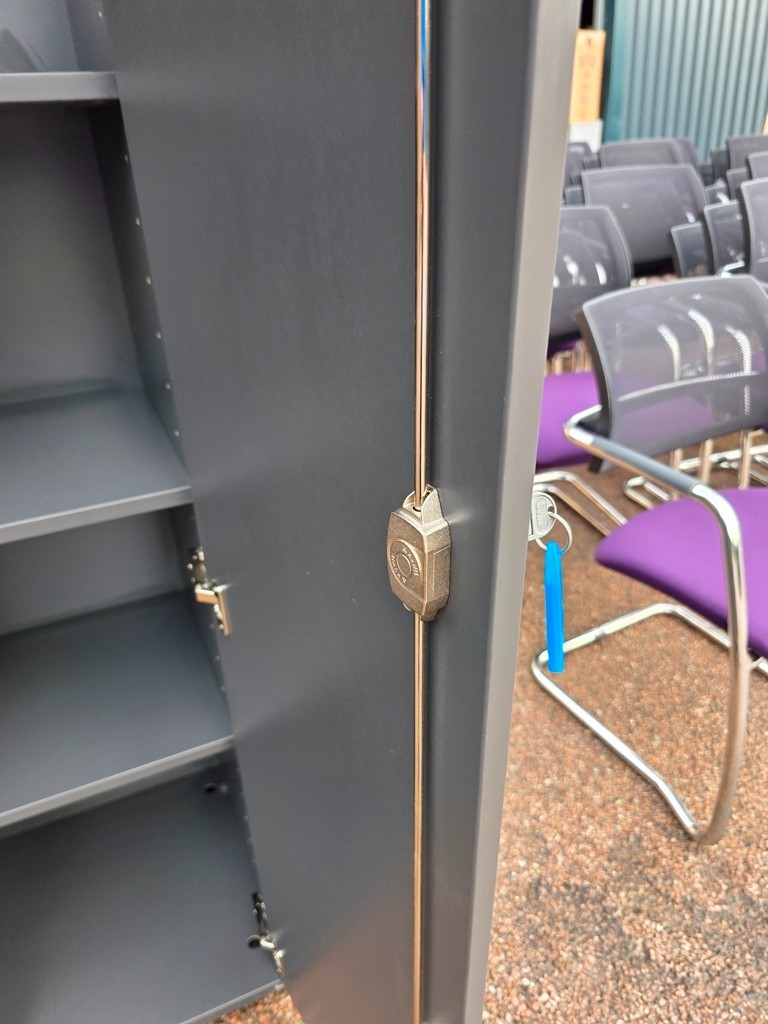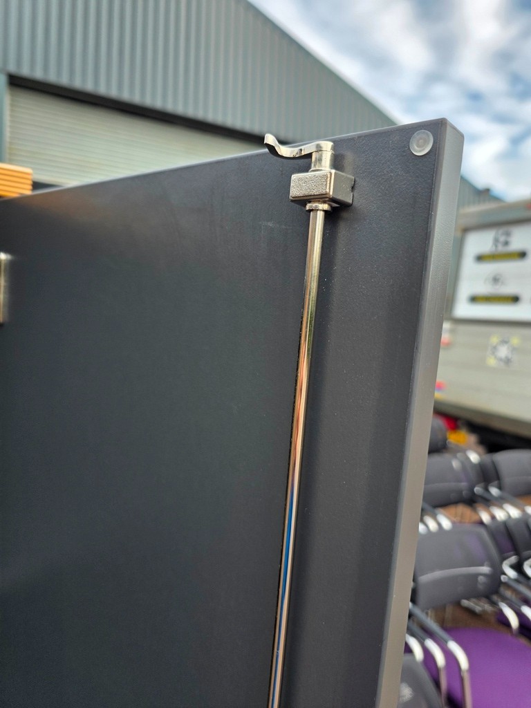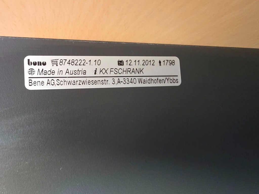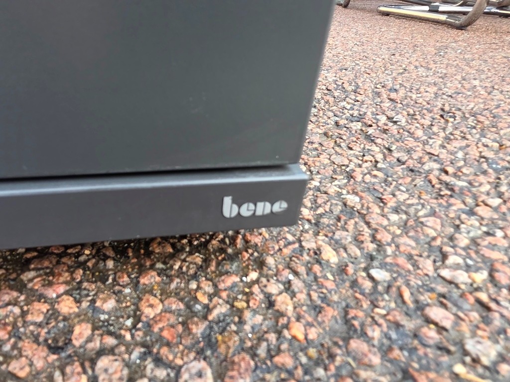 High-quality Bene storage cupboard in a modern graphite finish with a smart wood-effect top. A clean, professional option for offices, studios, storage rooms, and commercial environments where you need secure, tidy storage.