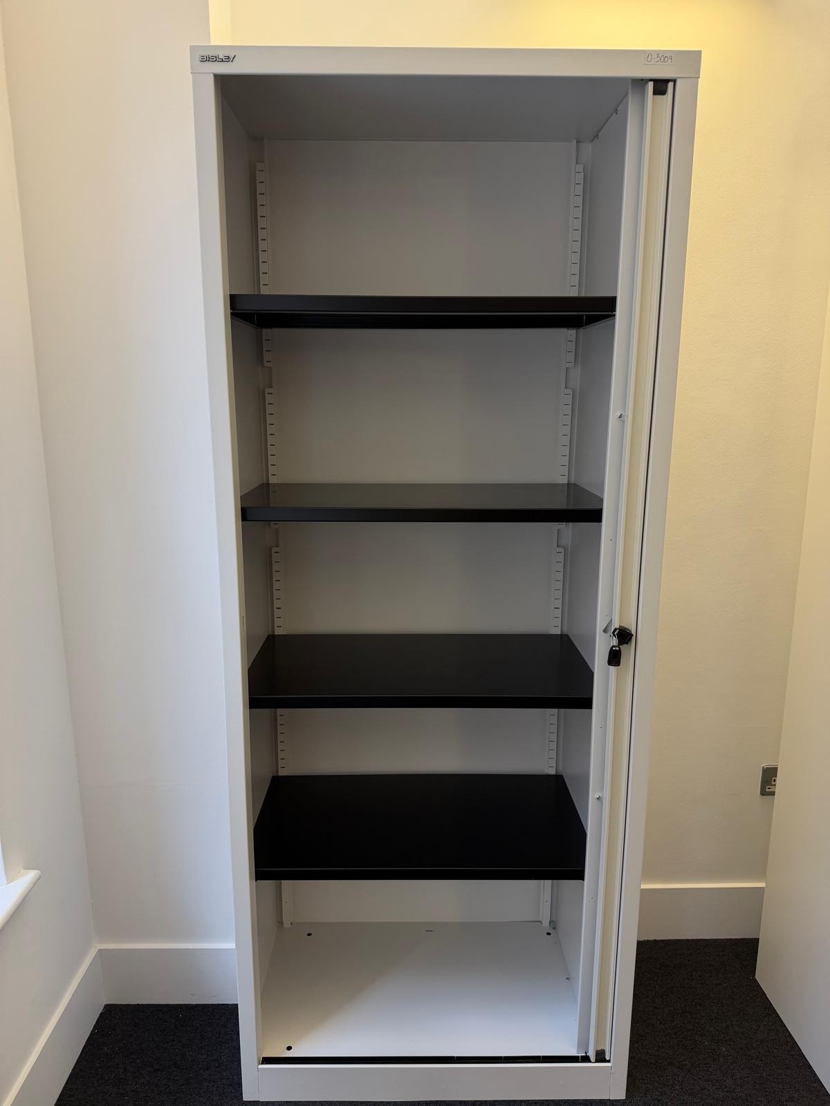 Bisley Lockable Tambour Cupboard 4 Shelves – W:80cm x H:197cm x D: 47cm
