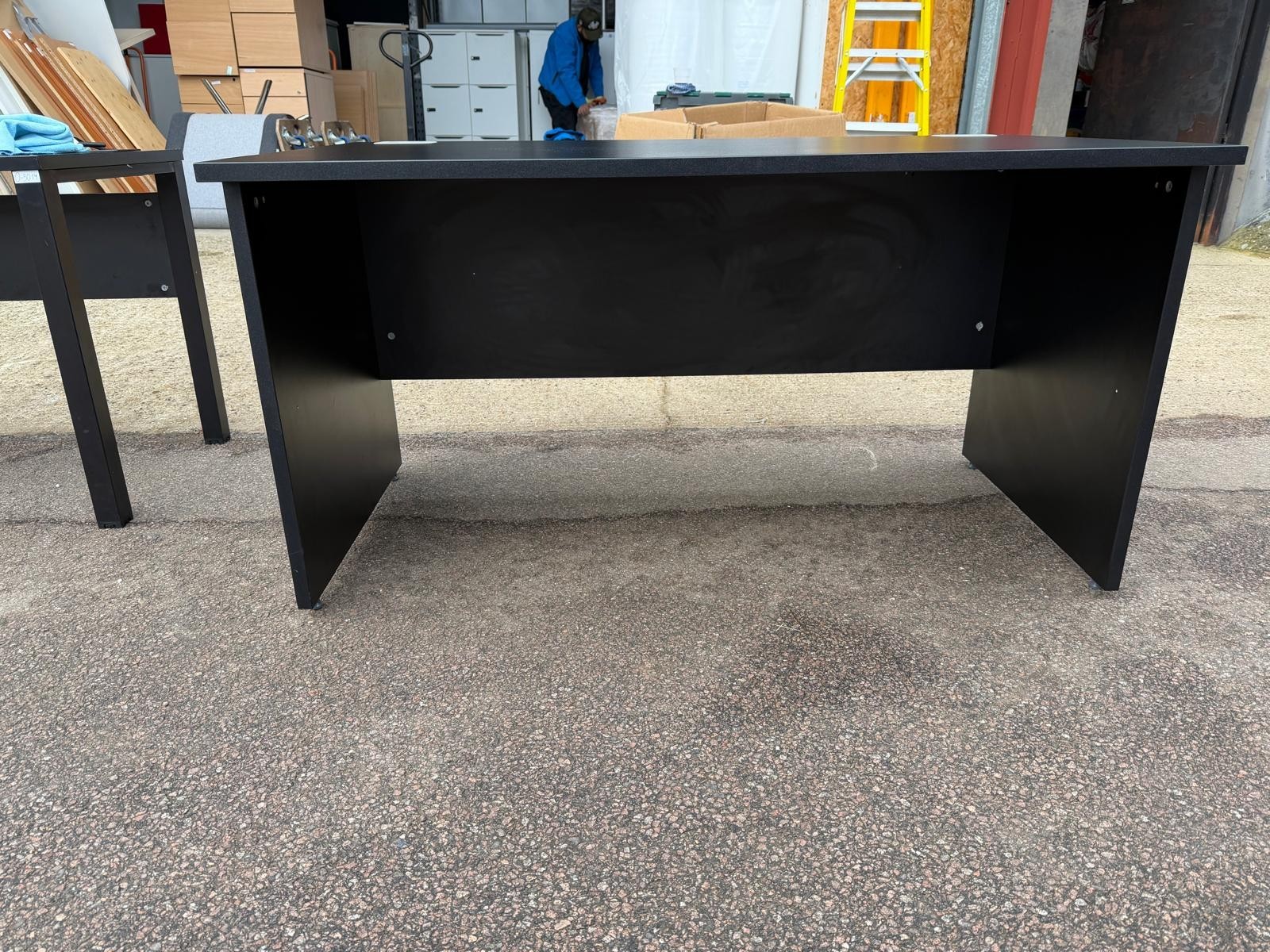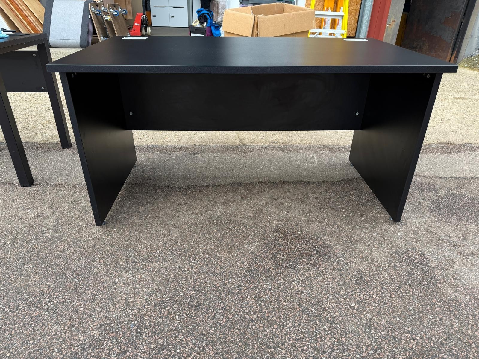 Black Office Desk With Modesty Panel and Cable Ports – 140×80