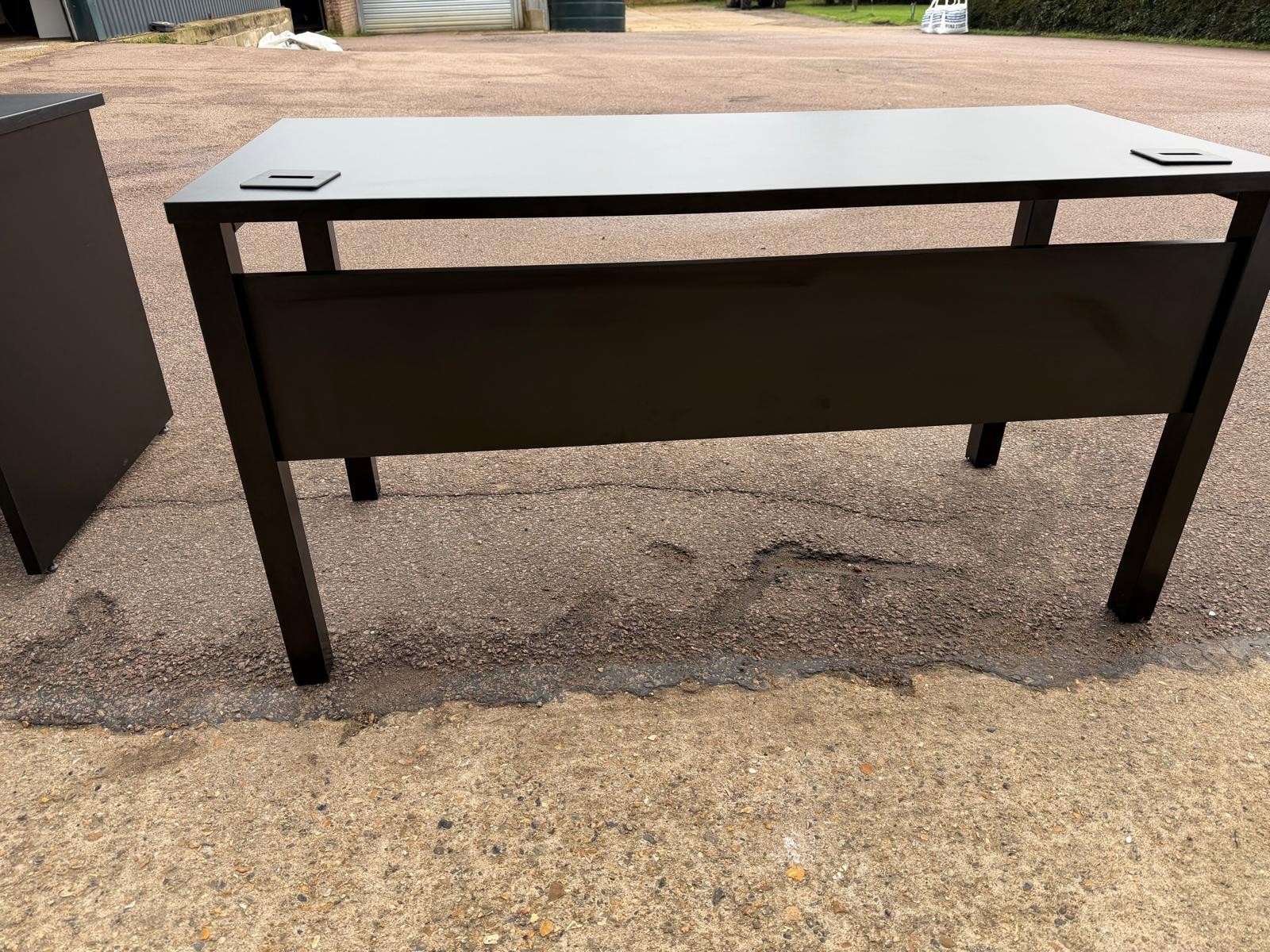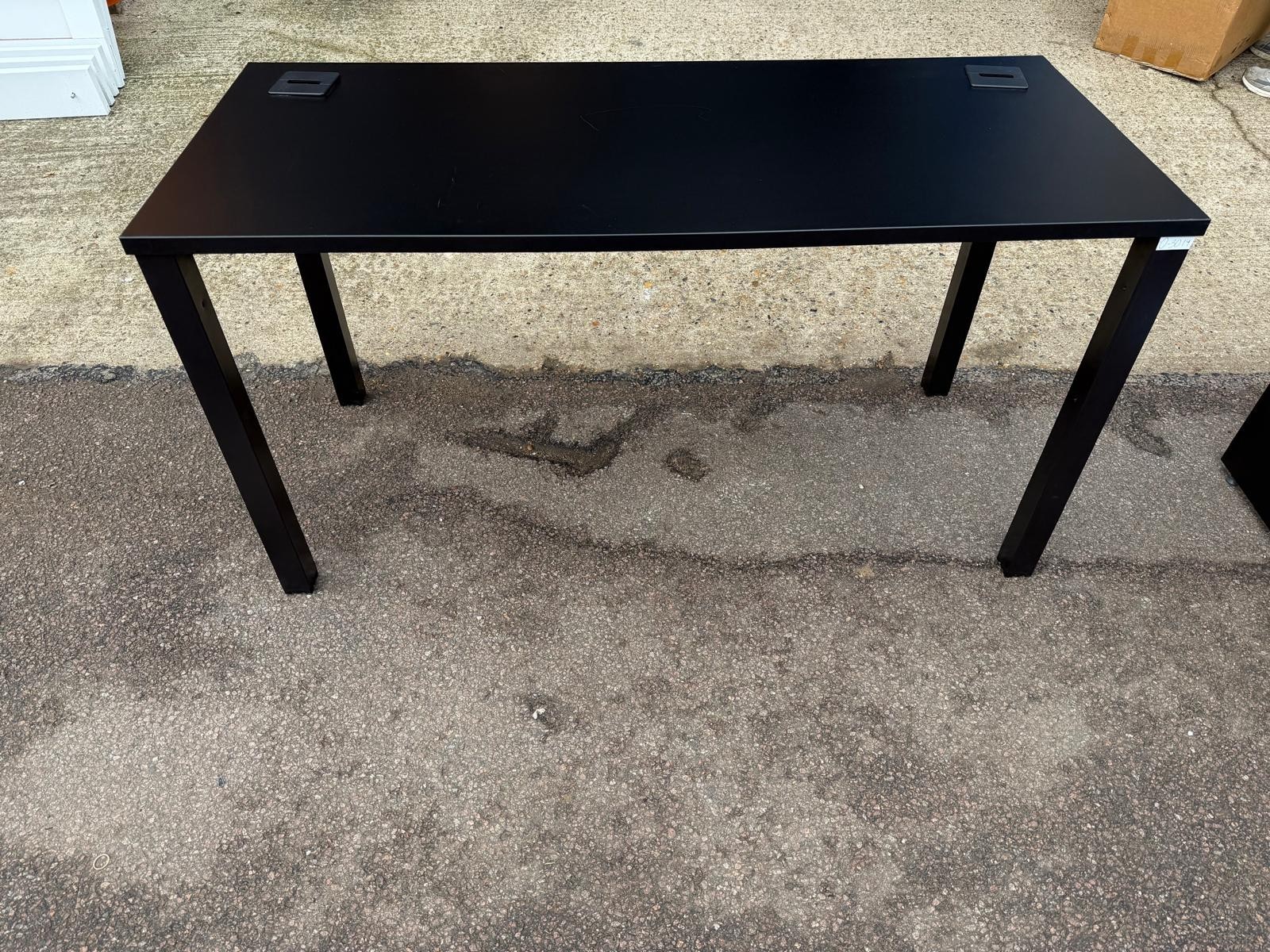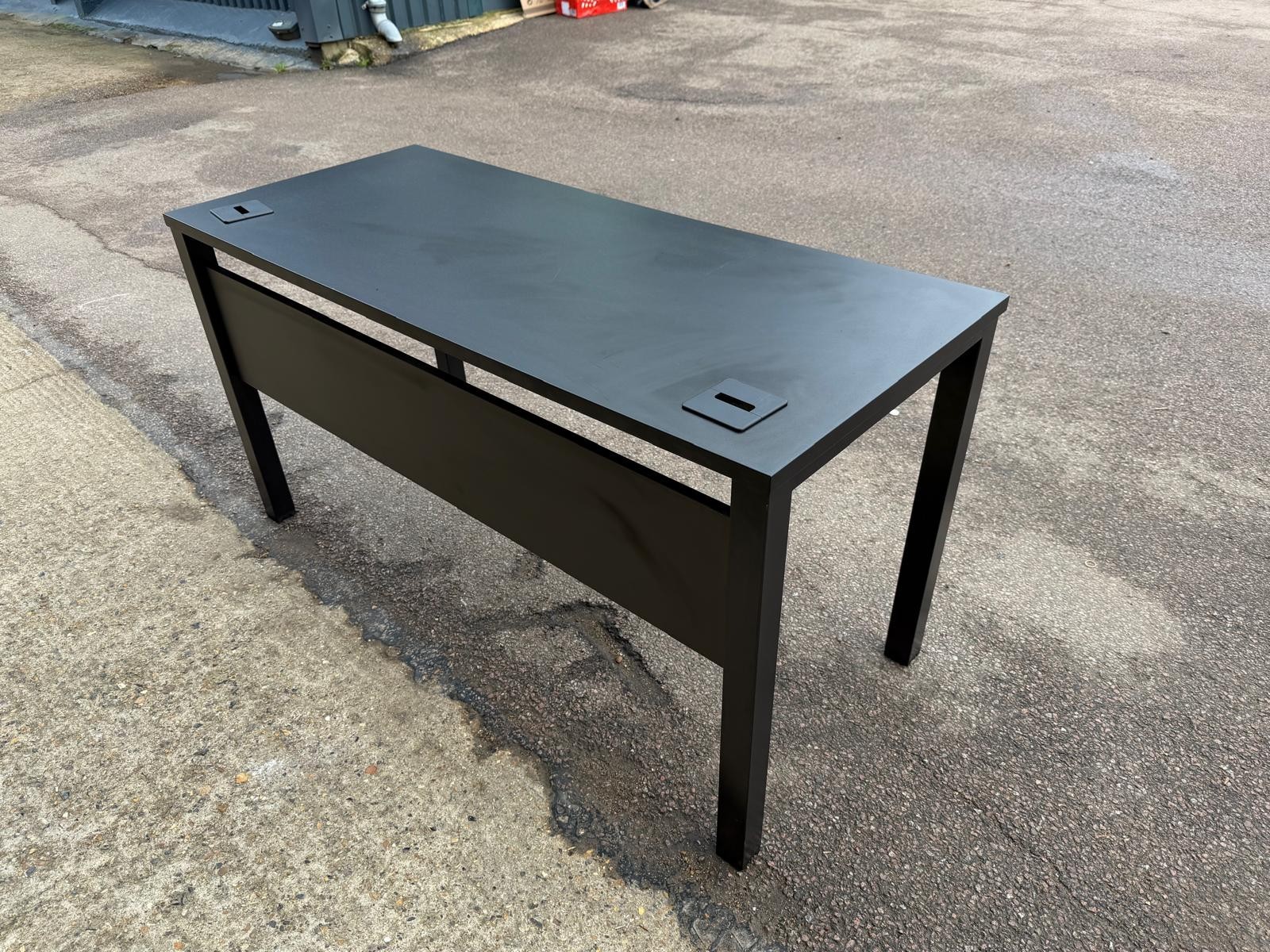 Black Office Desk 140x60cm with Cable Ports & Modesty Panel