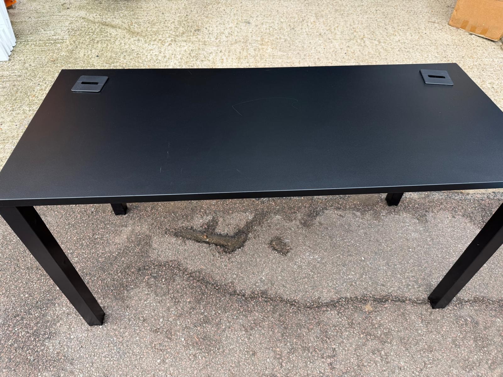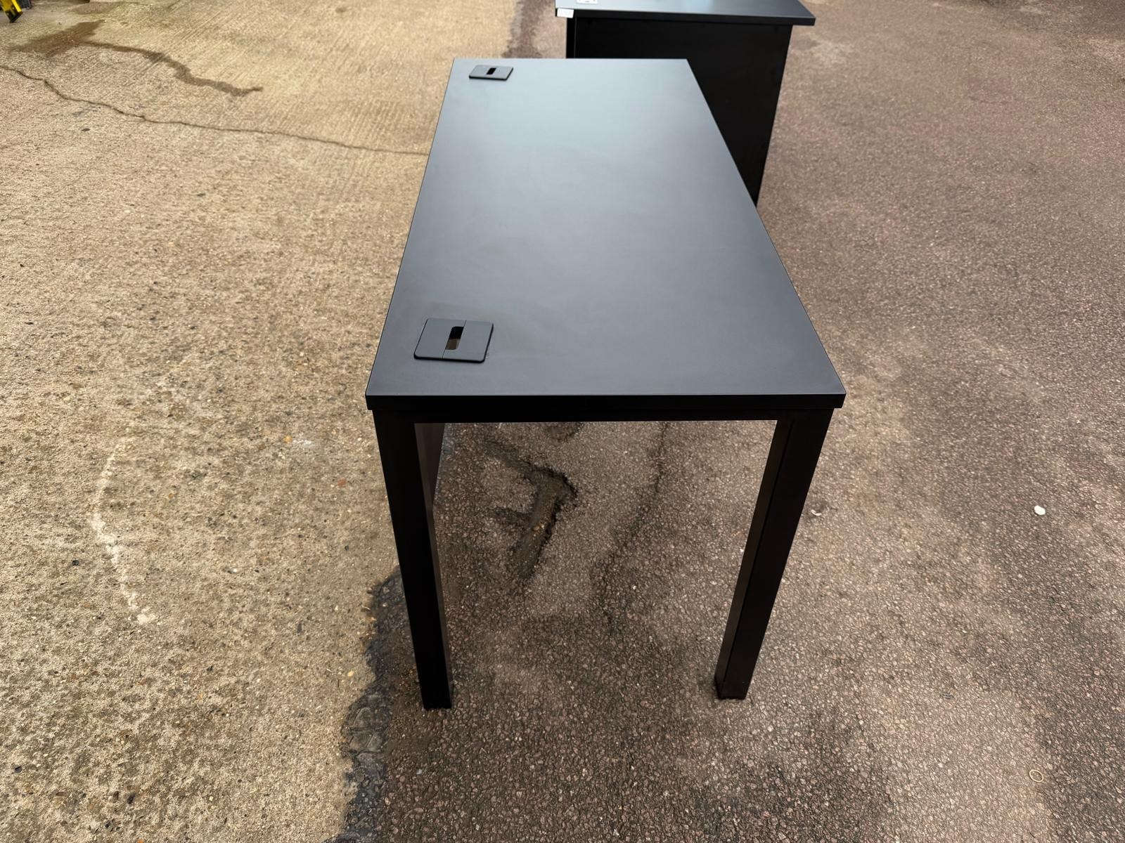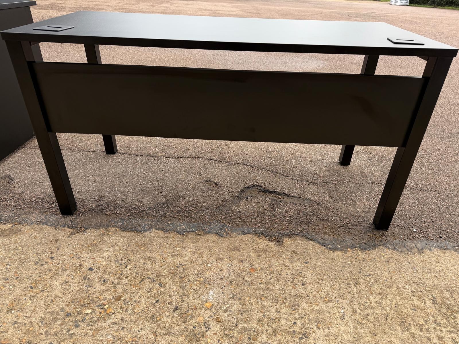 Black Office Desk 140x60cm with Cable Ports & Modesty Panel