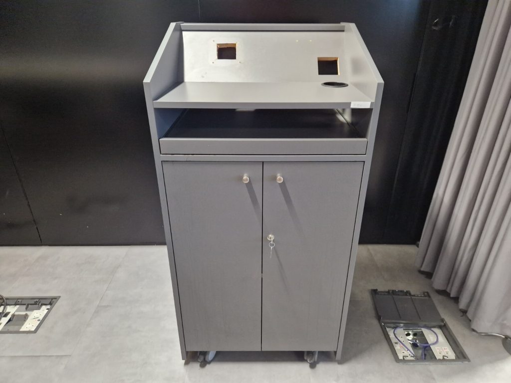• Floor base + top fixing bracket (as pictured) for stable floor-to-desk routing