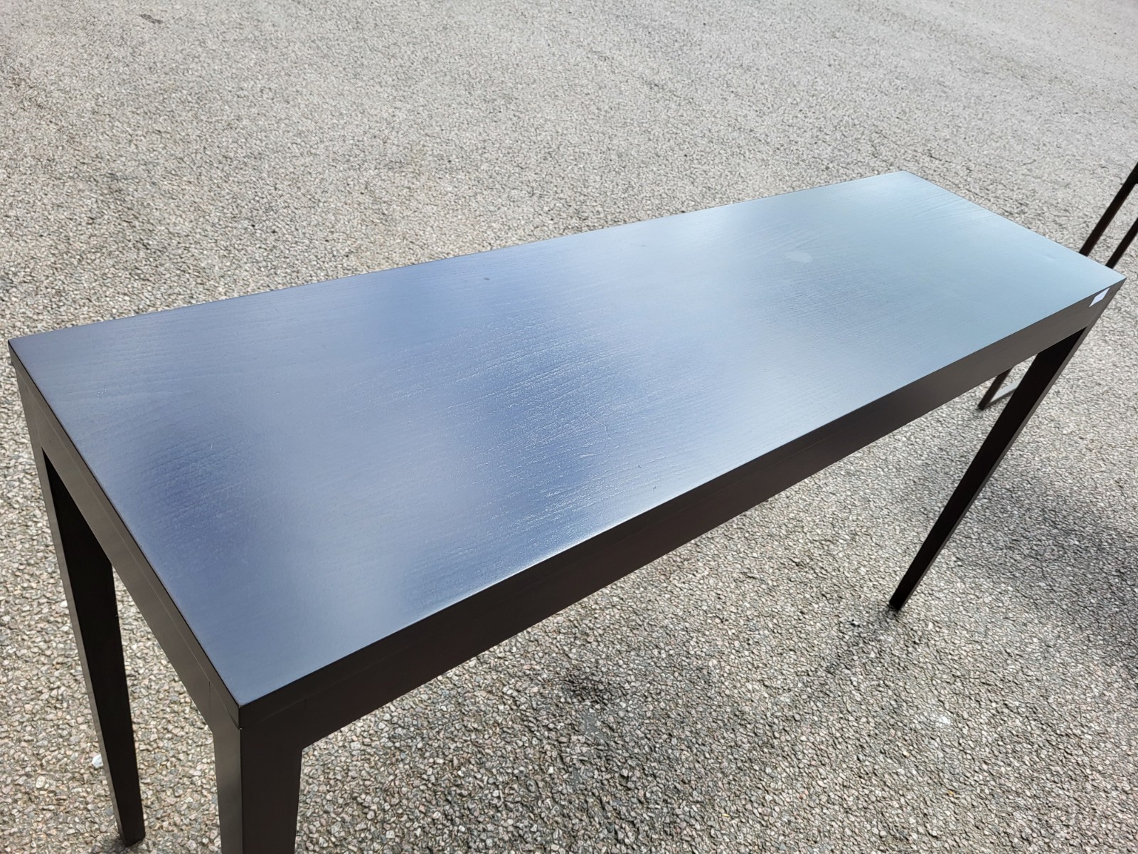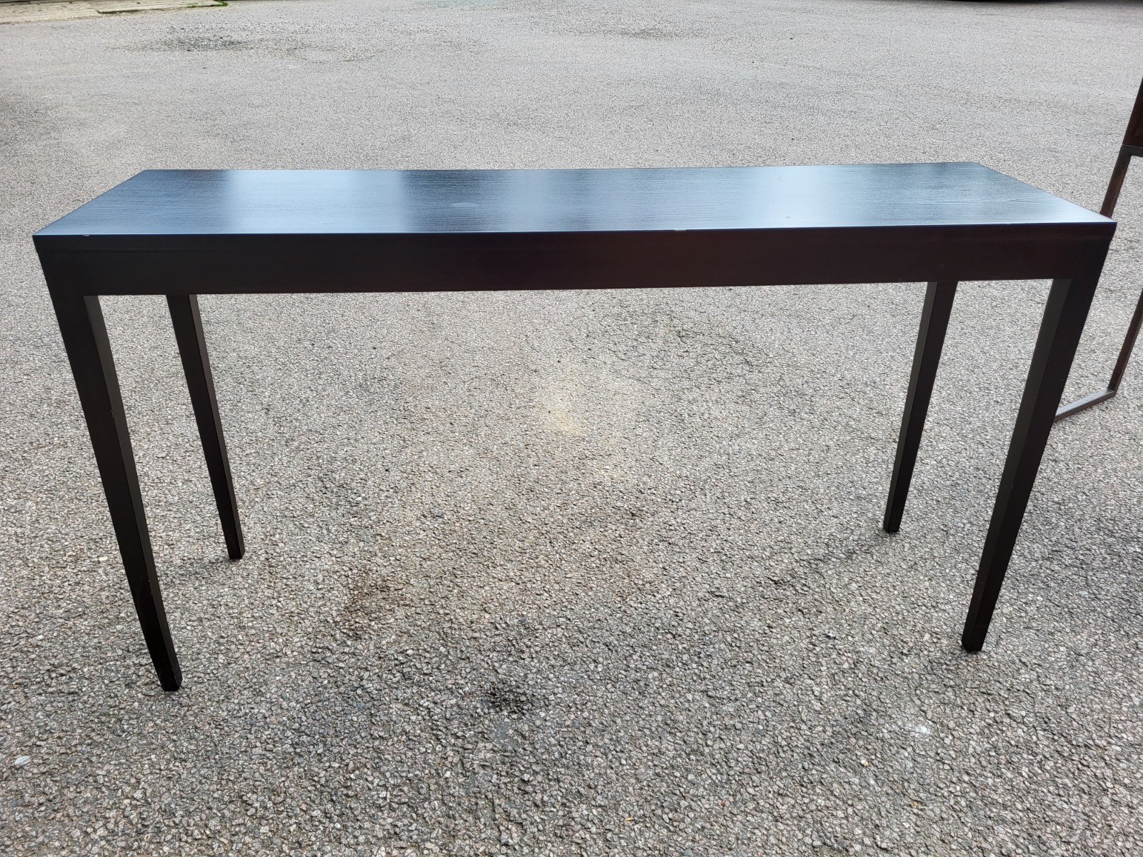 A sleek dark wood console table designed for hallways, living rooms, entrance spaces, or behind-sofa placement where a long and slim surface works best.