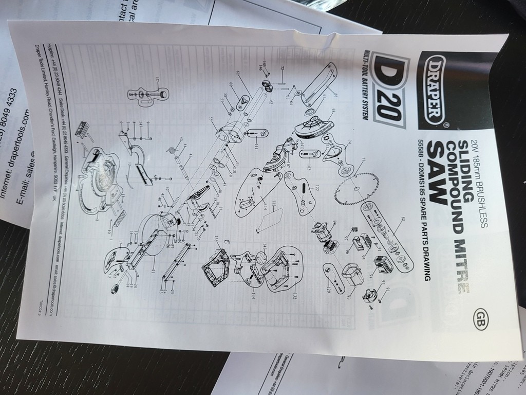 Used Draper D20 20V Brushless 185Mm Sliding Compound Mitre Saw – Part No. 20MS185