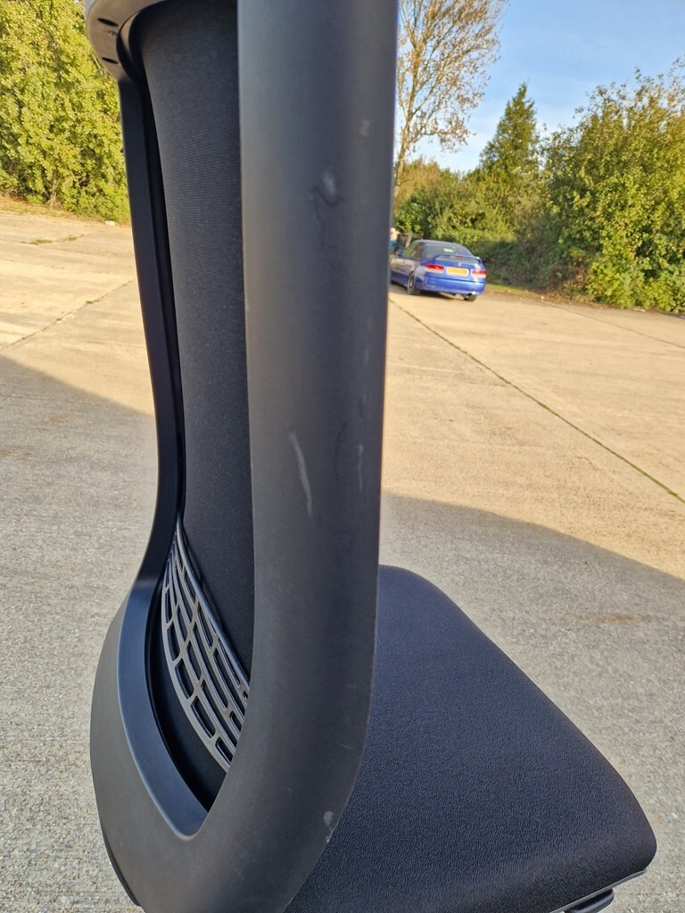 Seat – Upholstered seat pad, Combustion Modified High Resilience (CMHR) foam with black polypropylene under seat.
