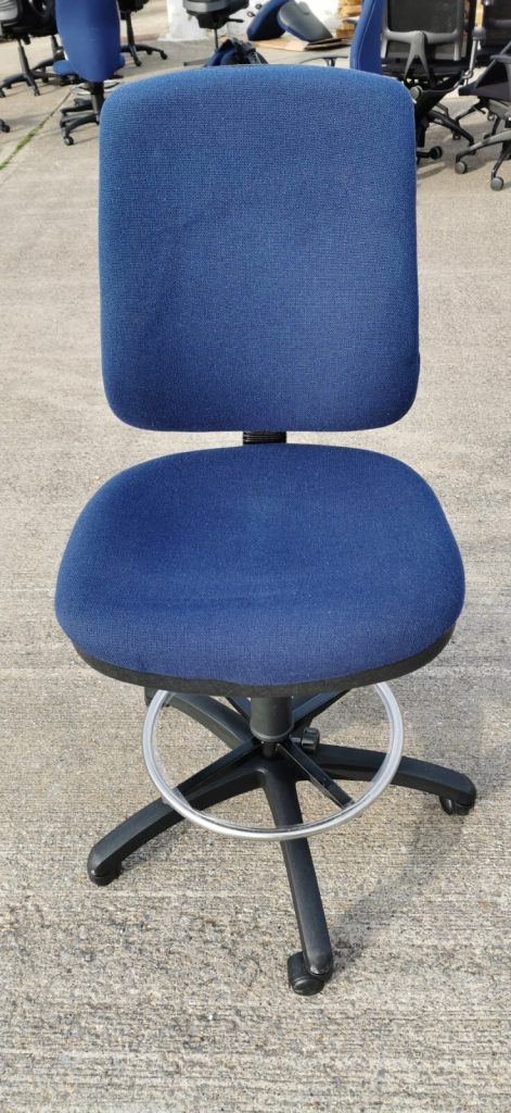 Professional draughtsman chair with adjustable footring, ideal for use with standing desks, laboratories, workshops, studios, and elevated workstations. Equipped with a brand-new chrome gas lift and adjustable footrest ring, this chair offers reliable ergonomic support and comfort for extended daily use. Its high backrest, adjustable functions, and durable commercial construction make it a practical and cost-effective seating solution for professional environments.