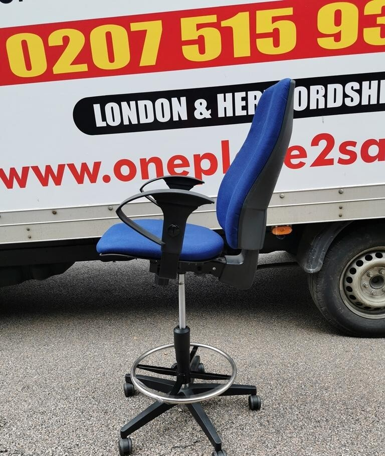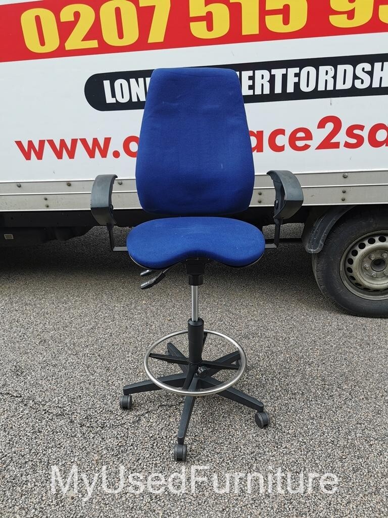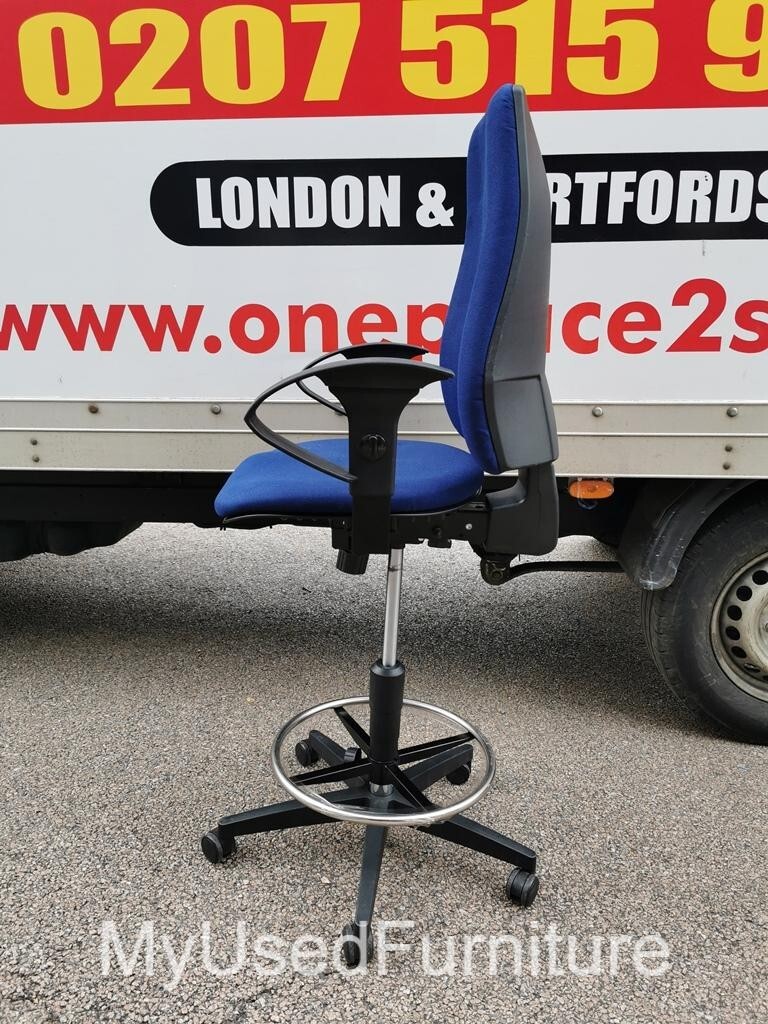 🪑 High Draughtsman Stool Chair – Foot Ring, Backrest, Swivel Base (Refurbished)