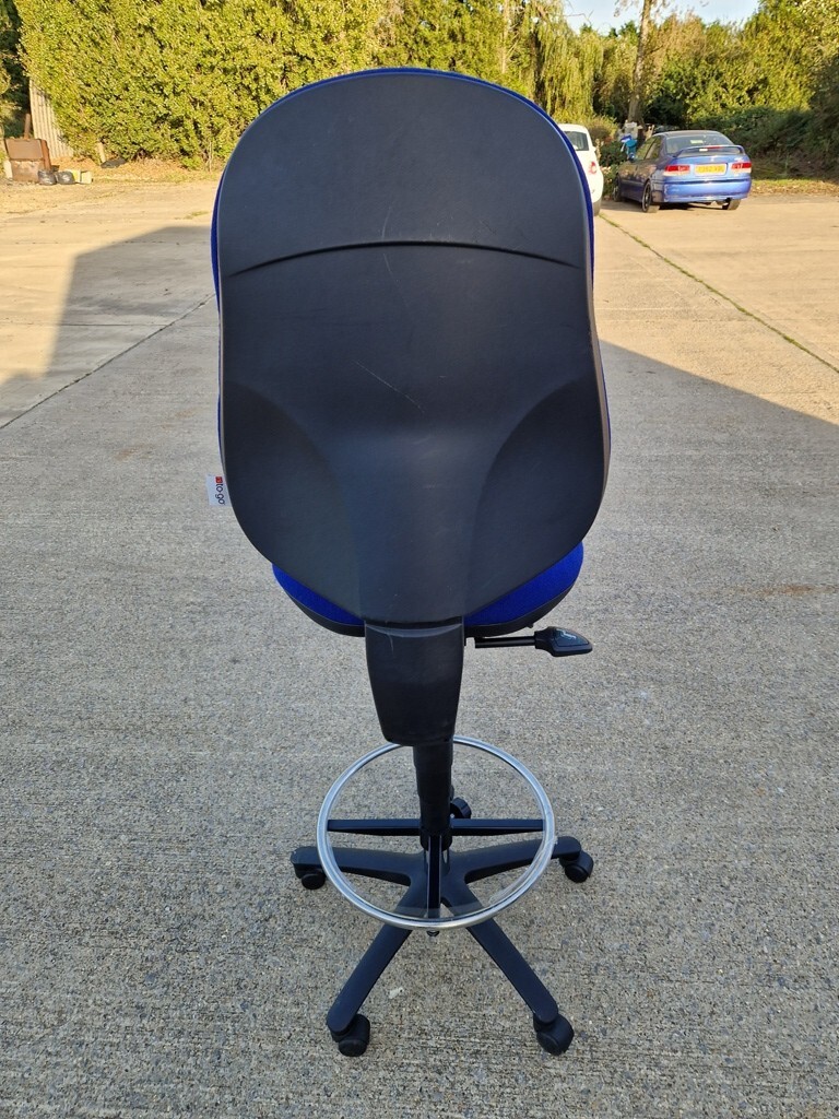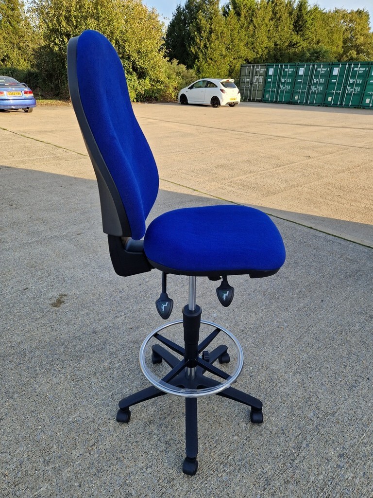 Draughtsman Ergonomic Used Chair High Back With Adjustable Foot Ring – Blue