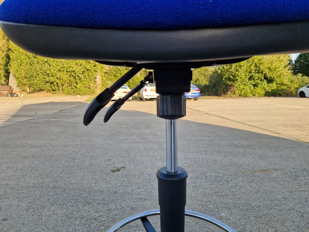 🪑 RSTO-GO Draughtsman Chair – Blue Fabric, Foot Ring, Ergonomic Adjustable Stool