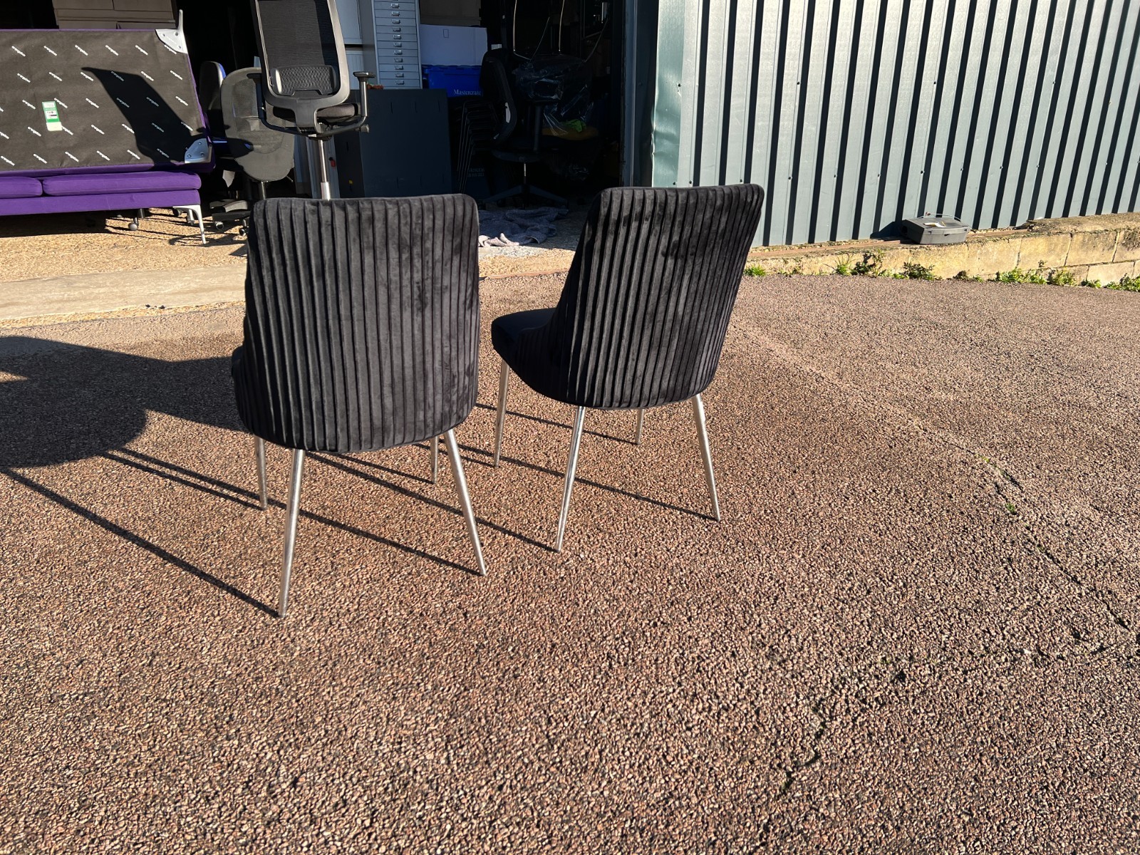 Smart, modern pair of Dunelm upholstered chairs in black with ribbed/channel back detailing and a comfortable padded seat. Ideal for dining rooms and kitchens, or as reception/visitor seating in offices and waiting areas.