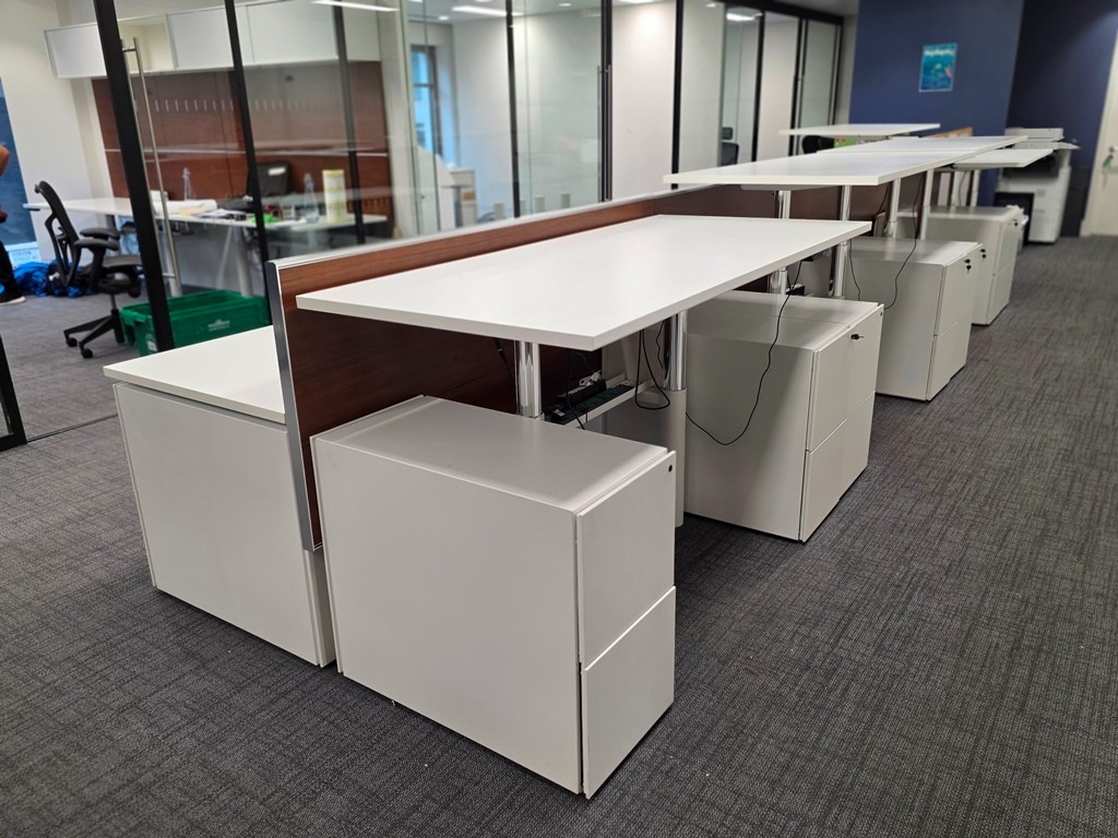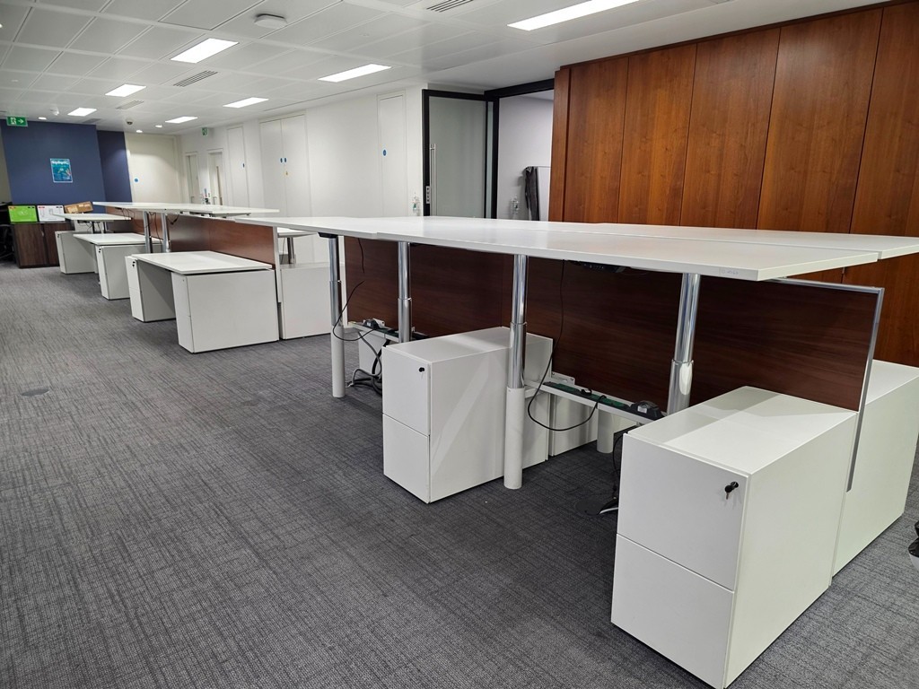 Matching sit-stand desks, hanging cupboards and static free-standing desks may also be available. Please check our other listings.