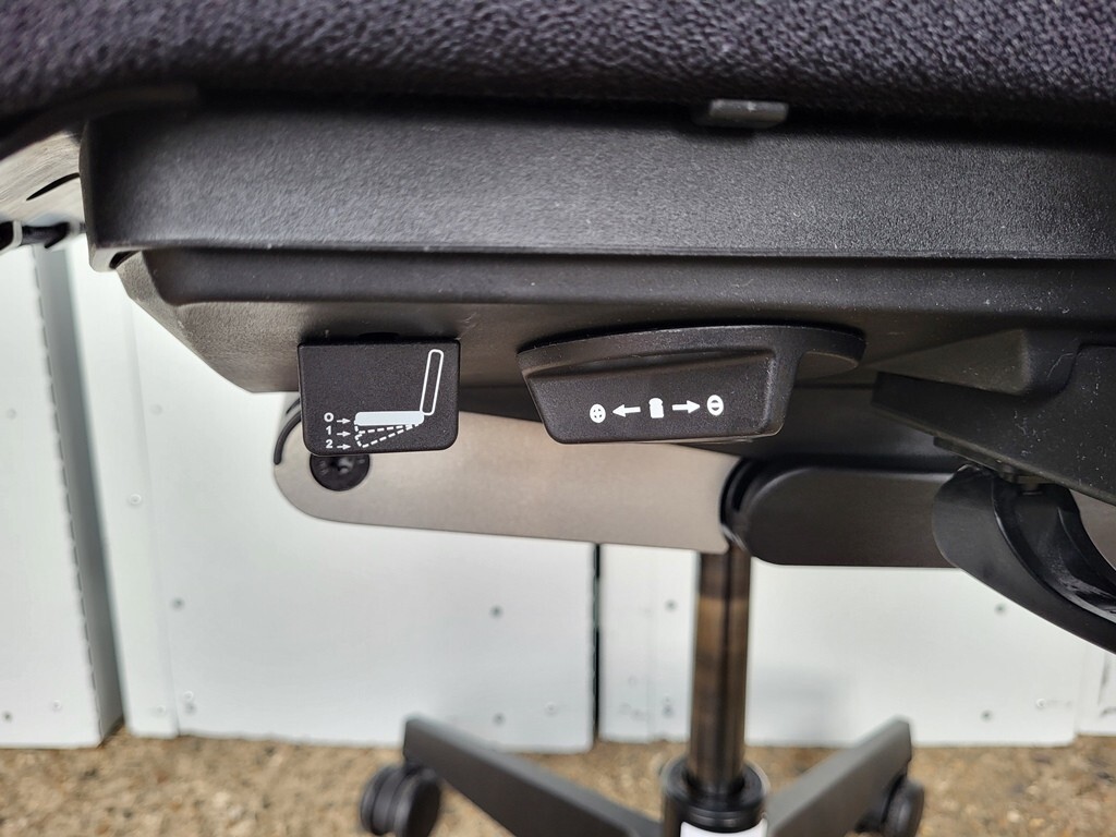 Armrests: height-adjustable and sideways (width) adjustable, white arms