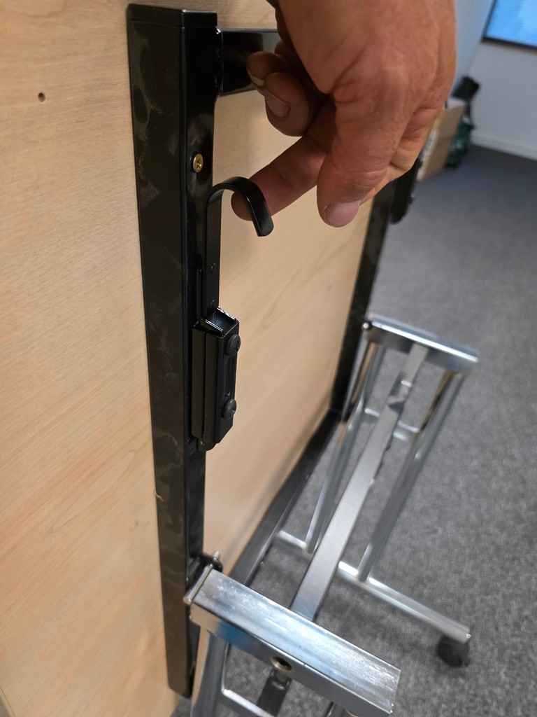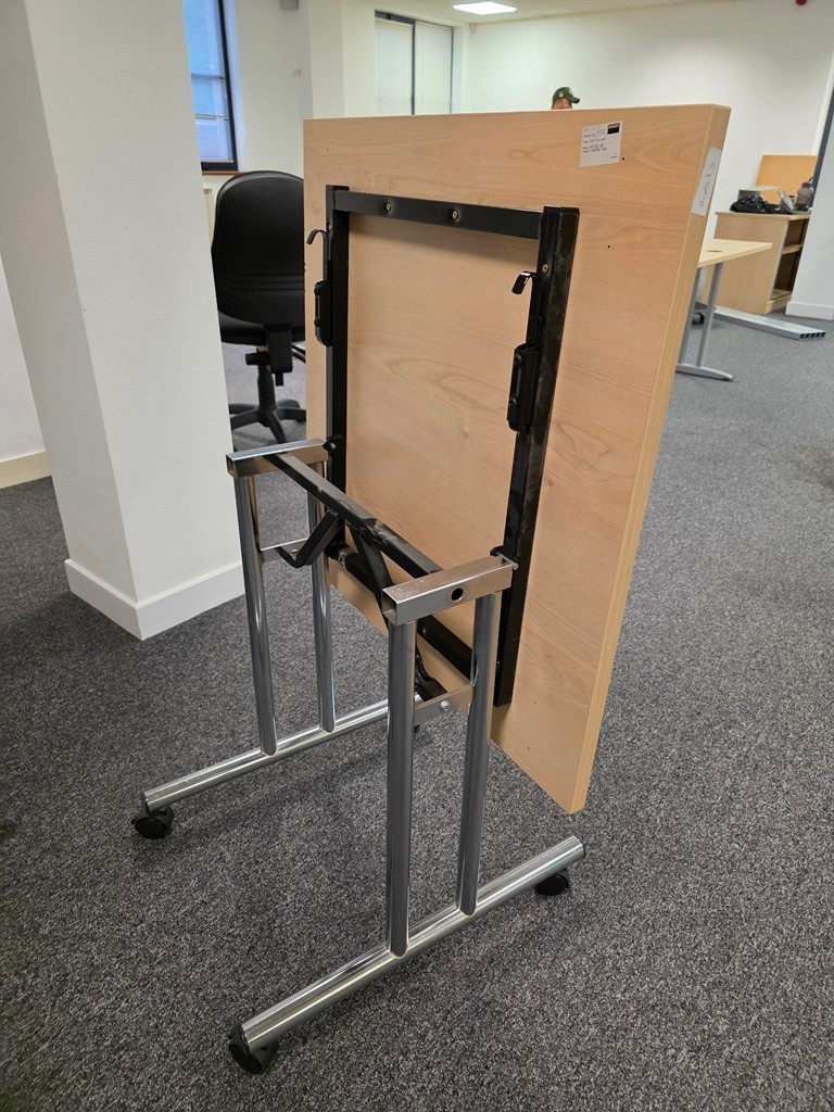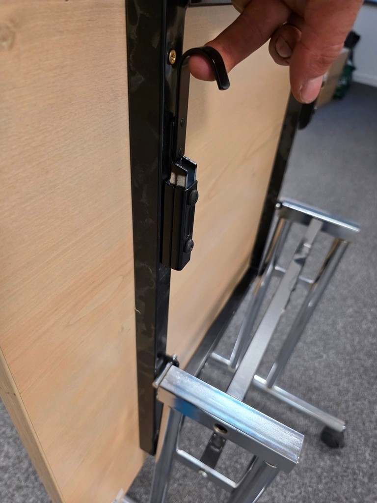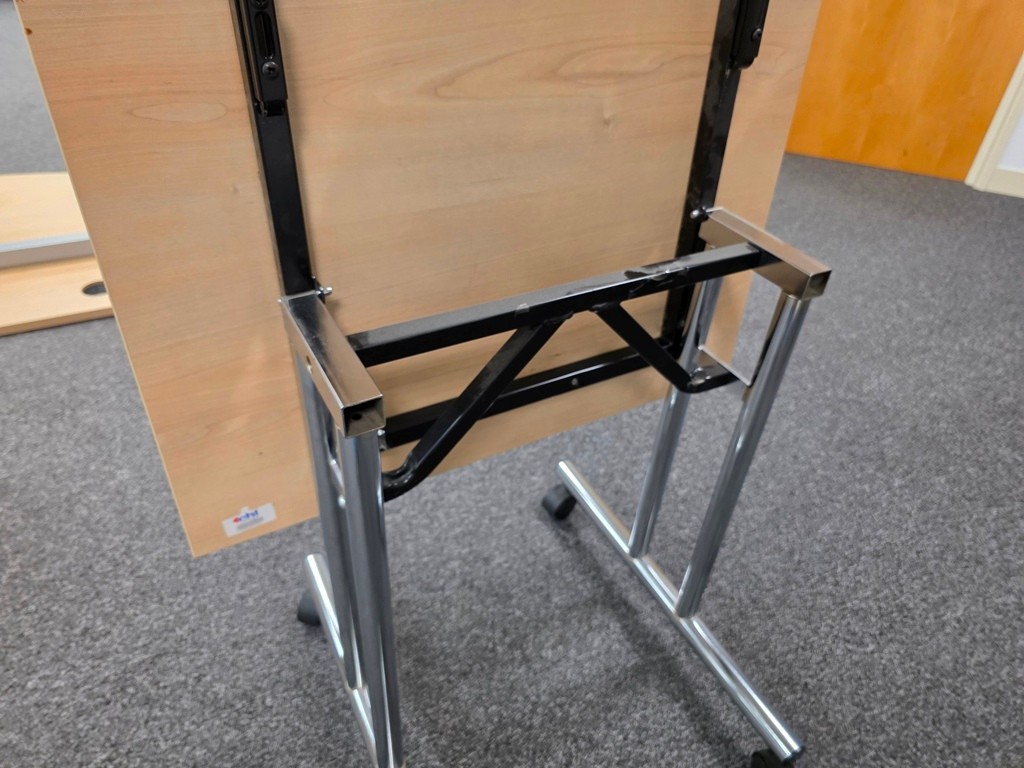 Compact flip-top meeting/training table from Senator, designed for agile spaces that change layout throughout the day. The square 25 mm MFC top and painted steel frame deliver a durable, professional finish, while the flip-and-nest action frees up floor space when not in use.