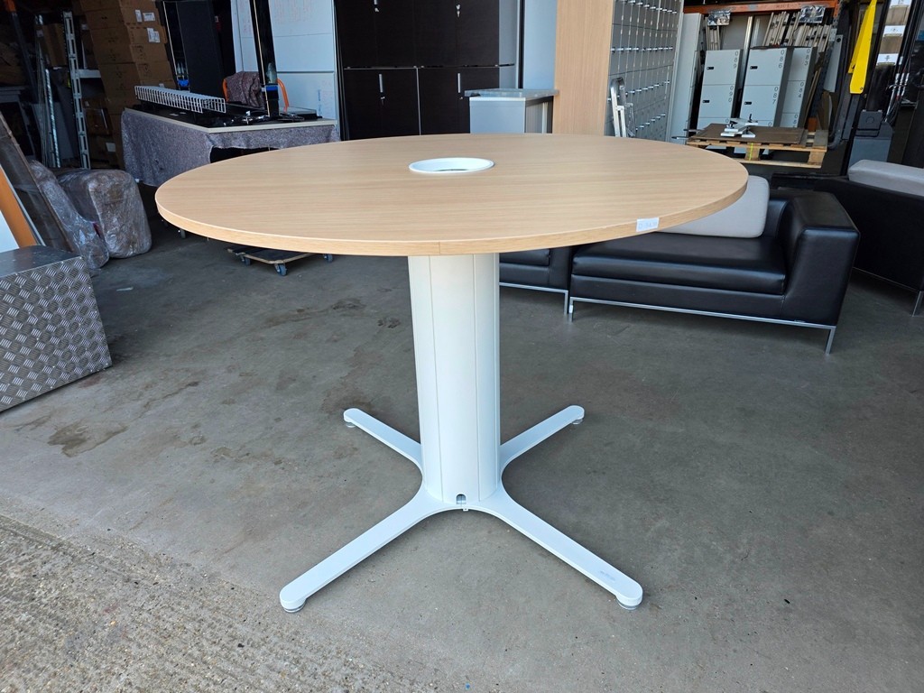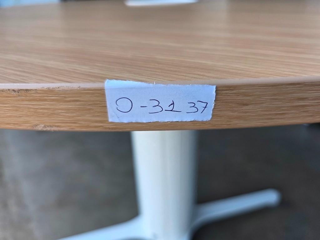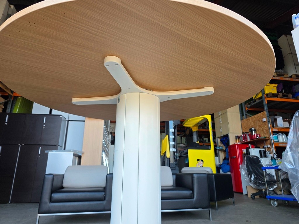 ⭕ High Circular Poseur / Meeting Table – 140cm Oak Effect Top with White Pedestal Base