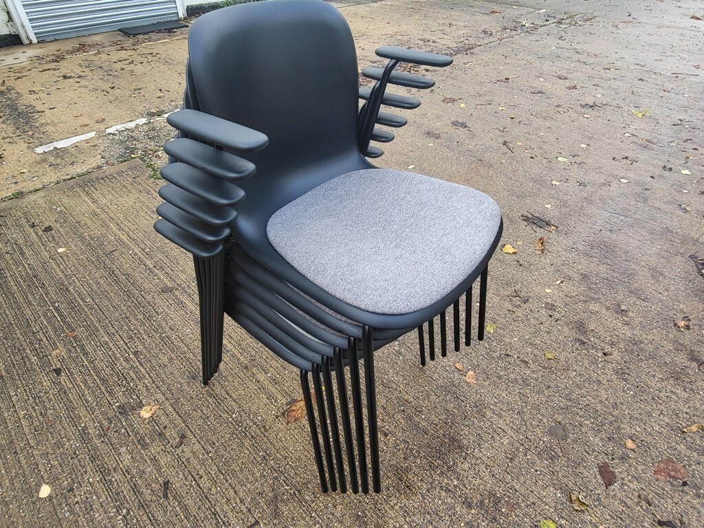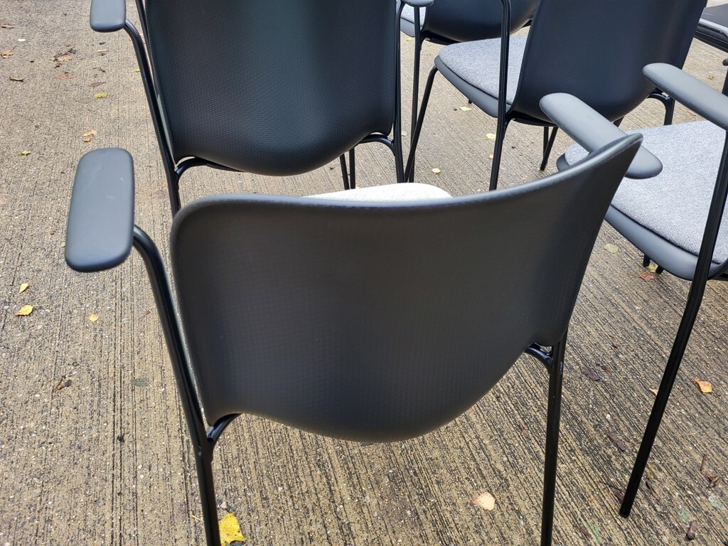 Enhance your office, breakout area, or educational space with this set of 6 original HOWE SixE 4-leg side chairs – all with arms for added comfort and support.