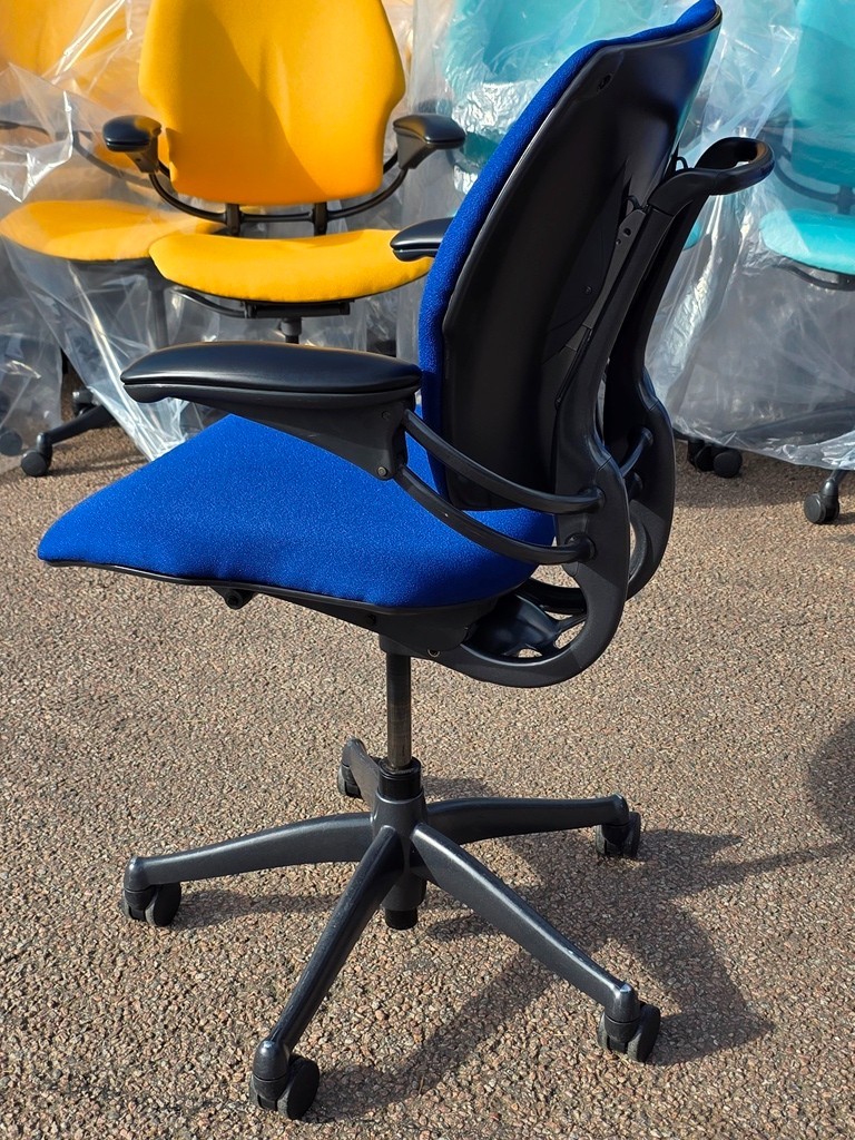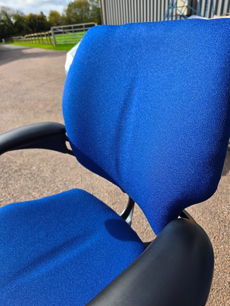 Huge stock available — ready to dispatch. Upgrade your workspace with the award-winning Humanscale Freedom task chair, professionally refurbished and reupholstered with brand new fabric or leather (depending on colour selection). Designed to adapt naturally to each user for long-hour comfort in home or office environments.