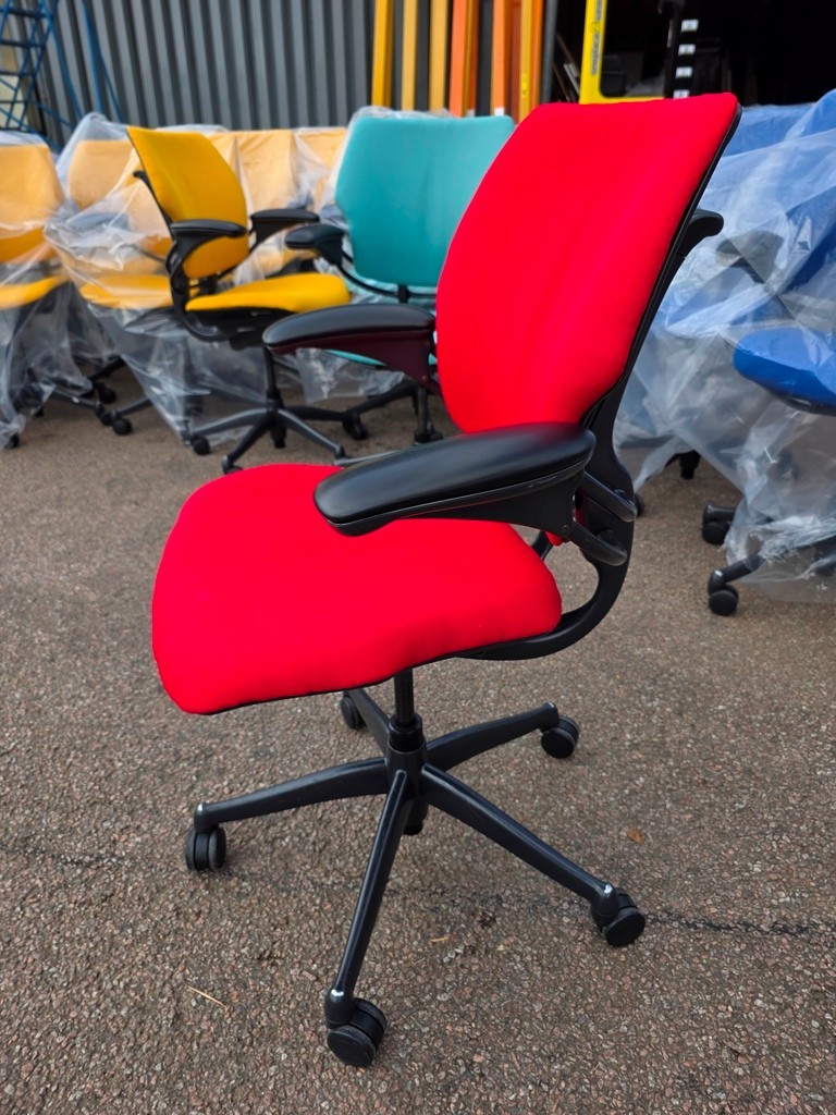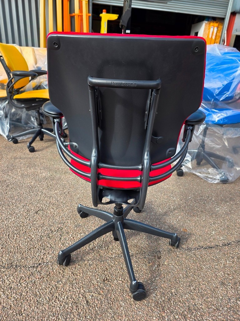 Upgrade your workspace with the award-winning Humanscale Freedom ergonomic task chair, professionally refurbished and finished with brand-new red upholstery. Designed to adapt naturally to each user, it delivers outstanding comfort and support for both home offices and commercial environments.