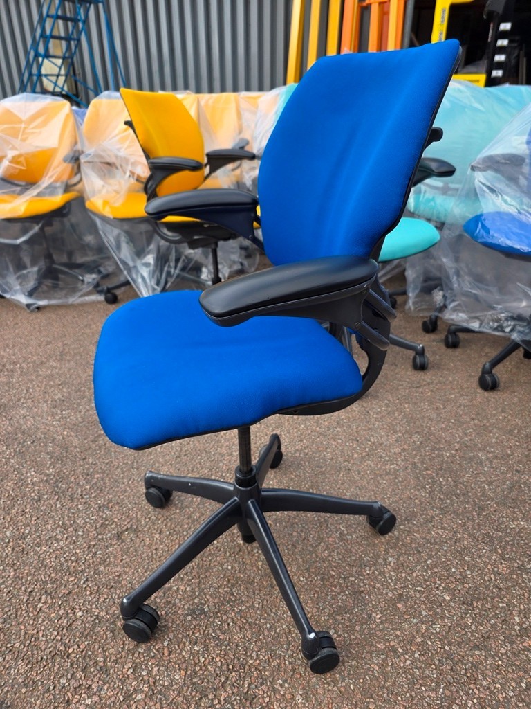 Upgrade your workspace with the award-winning Humanscale Freedom task chair, now available with brand new fabric or leather upholstery in a range of stunning colours. This fully adjustable ergonomic chair adapts to each user, providing exceptional comfort and support for both home and office use.