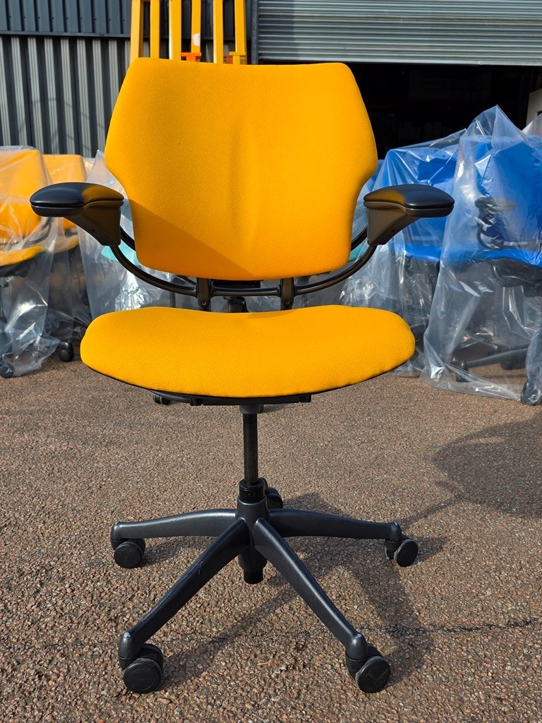 Upgrade your workspace with the award-winning Humanscale Freedom task chair, now available with brand new fabric or leather upholstery in a range of stunning colours. This fully adjustable ergonomic chair adapts to each user, providing exceptional comfort and support for both home and office use.