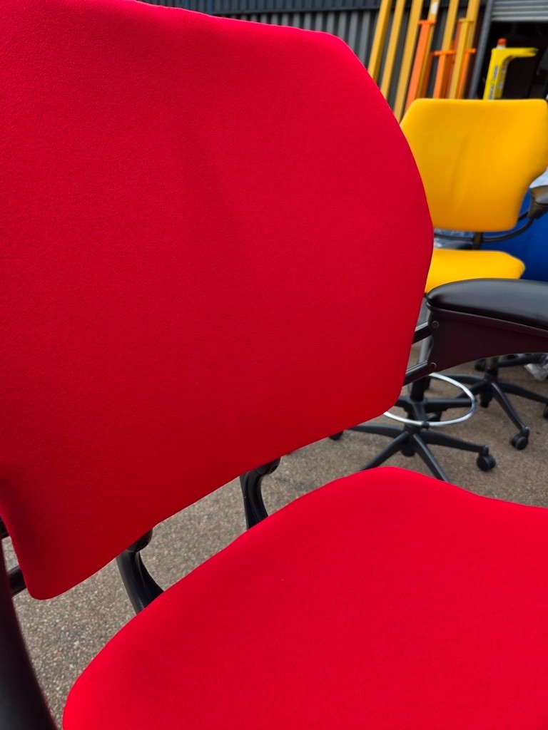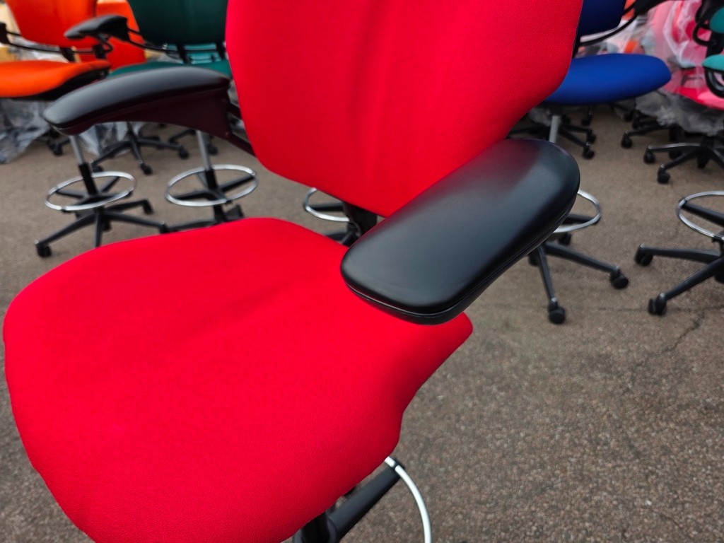 🪑 Humanscale Freedom Draughtsman Chair – Refurbished, Red Upholstery, Chrome Footring