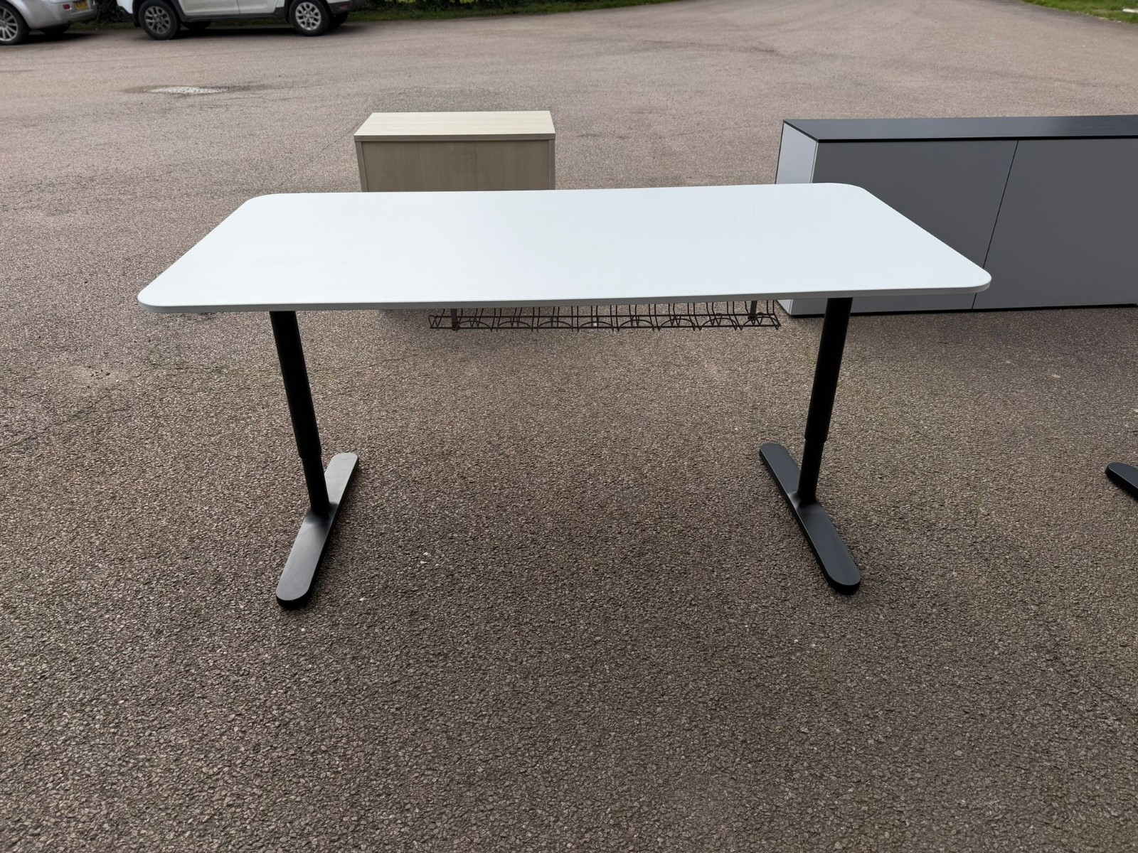- 1 × IKEA BEKANT desk (white top, black frame)