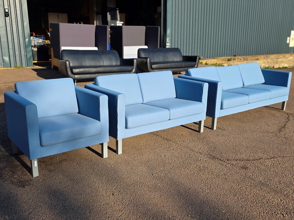 Kinnarps Scandinavia Light Blue Office Sofa Set – 1+2+3 seater Set
