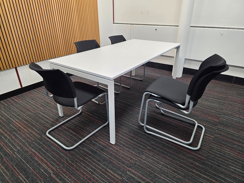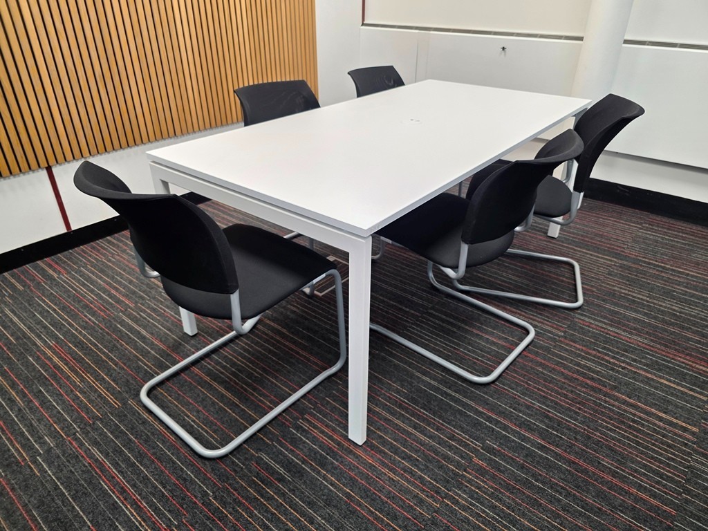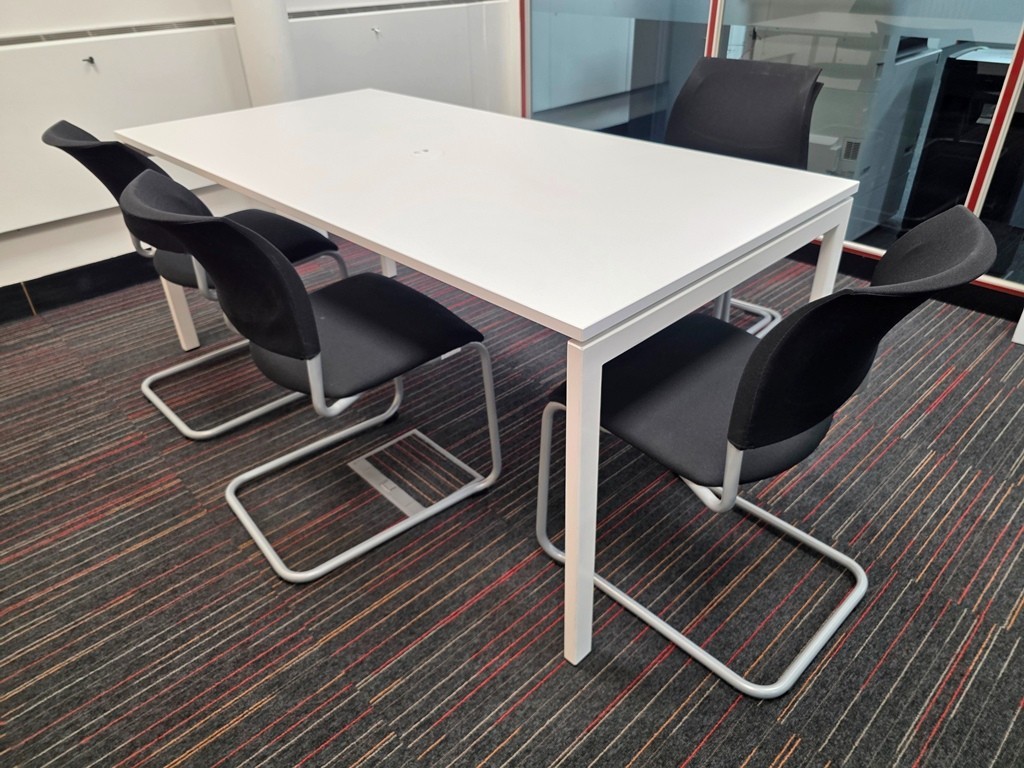 Set of Kinnarps Drabert Filio Visitor Chairs + White Meeting Table with Cable Port 180x90cm
