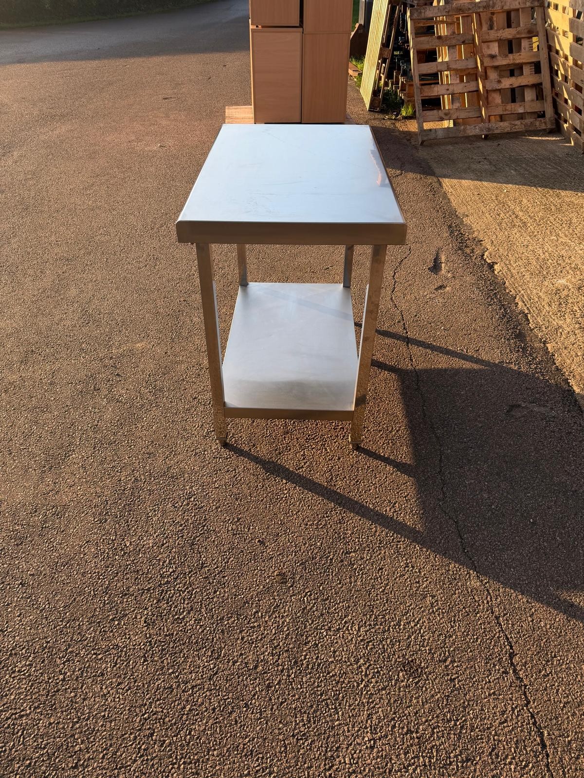 Practical stainless steel work table with an undershelf – ideal as a food prep station, kitchen workspace, or utility bench where you need a durable, wipe-clean surface.