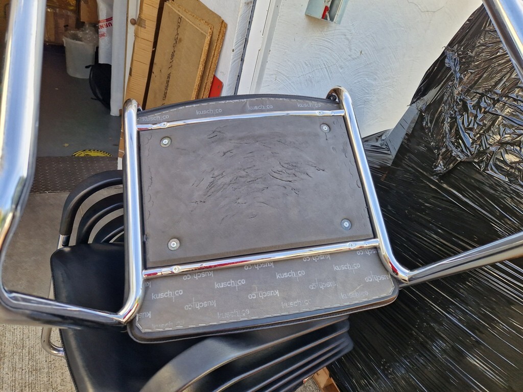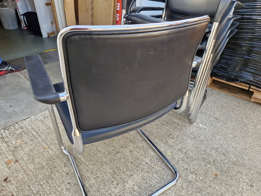 Material: Genuine black leather upholstery with chrome cantilever base and integrated armrests for comfort and style