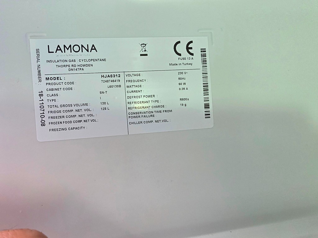 Lamona HJA6312 Integrated Undercounter Fridge (128L) – 60cm Wide White