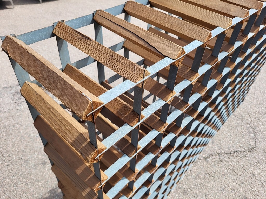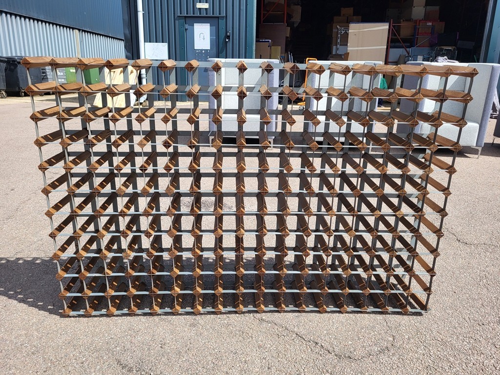 Heavy-duty, traditional pine slats with galvanised steel connectors for reliable, space-efficient storage. The classic lattice keeps bottles horizontal to help preserve corks and labels—ideal for home cellars, restaurants, and retail displays.