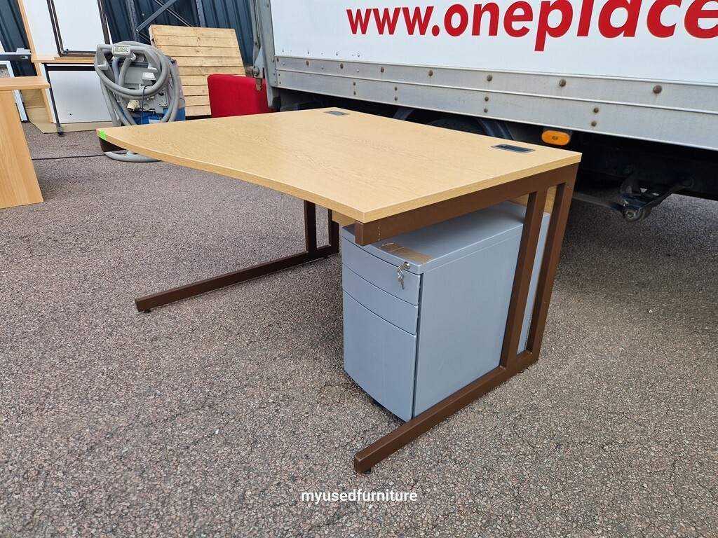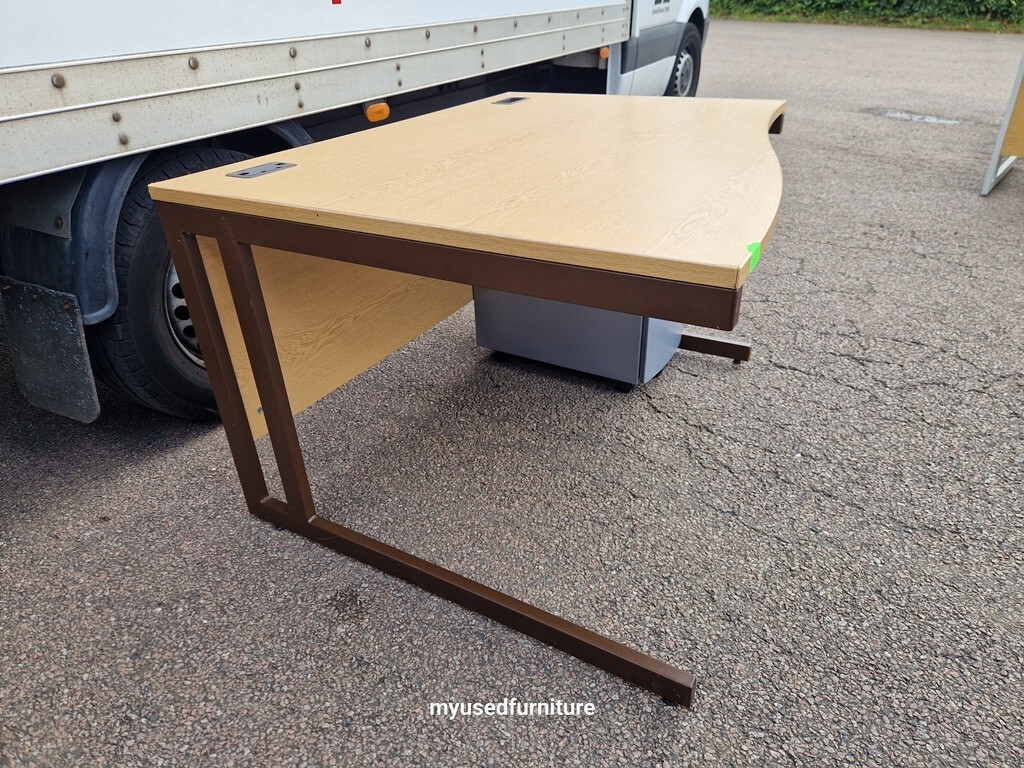 1 × Beech effect wooden left hand wave office desk with steel legs