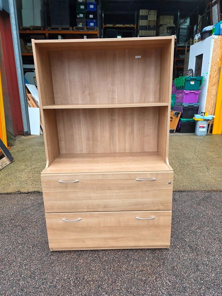 Versatile office storage with open shelving + drawers, ideal for home office, study, or reception areas.