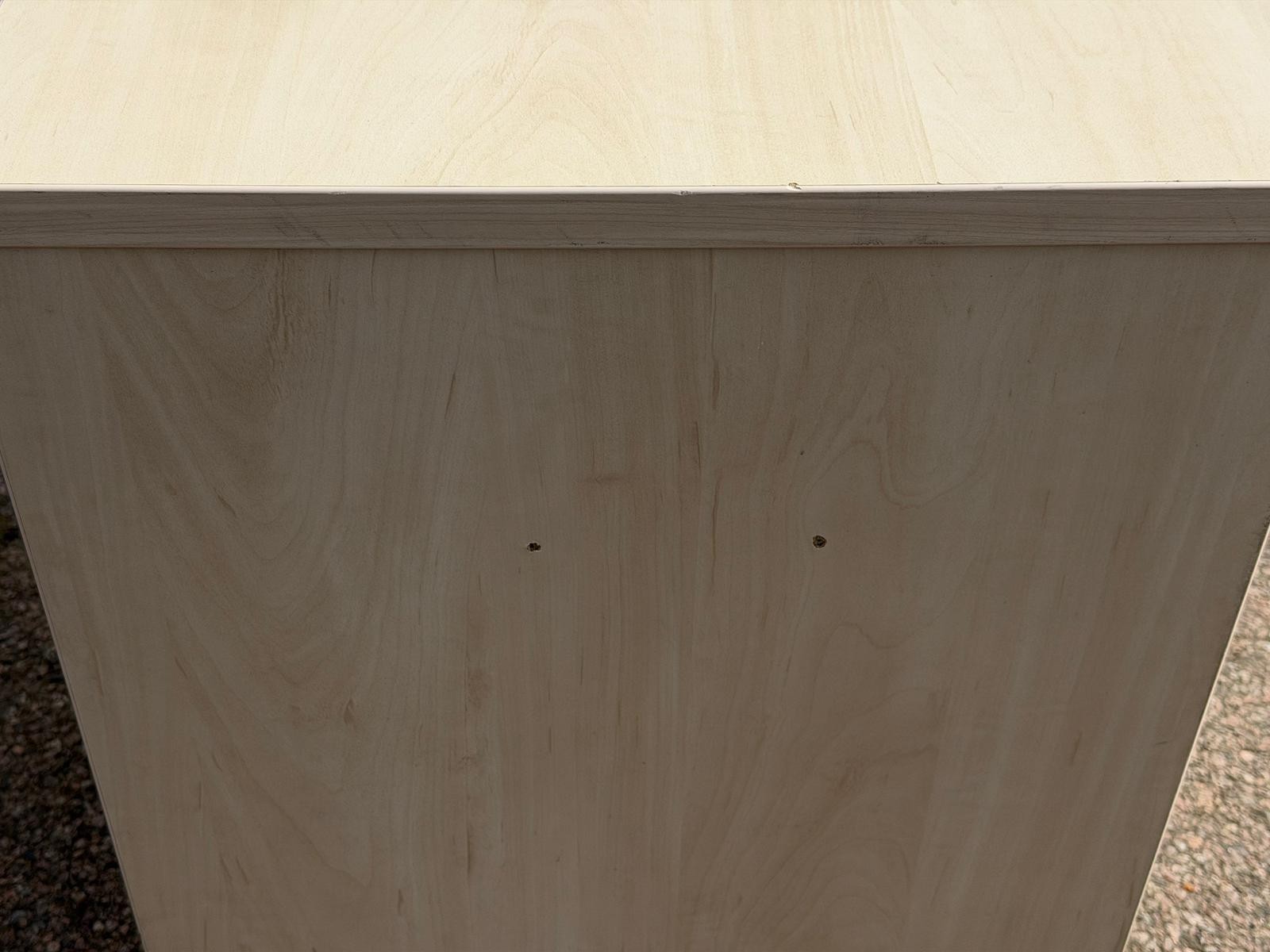 - Clean light maple finish with silver shutter front