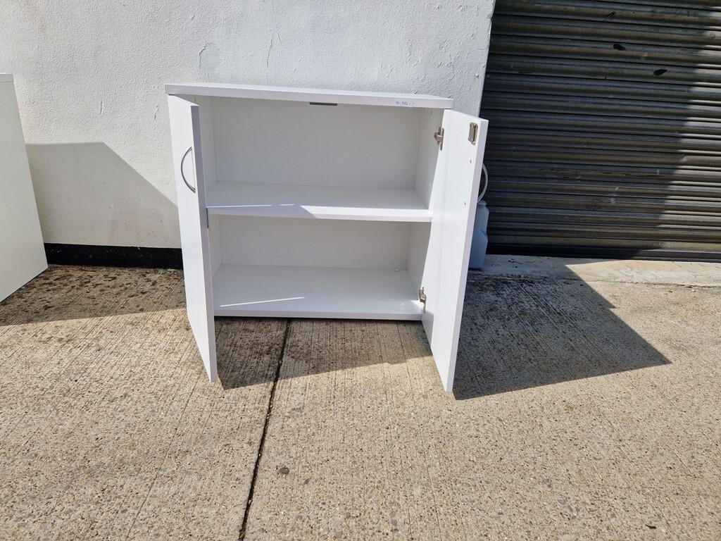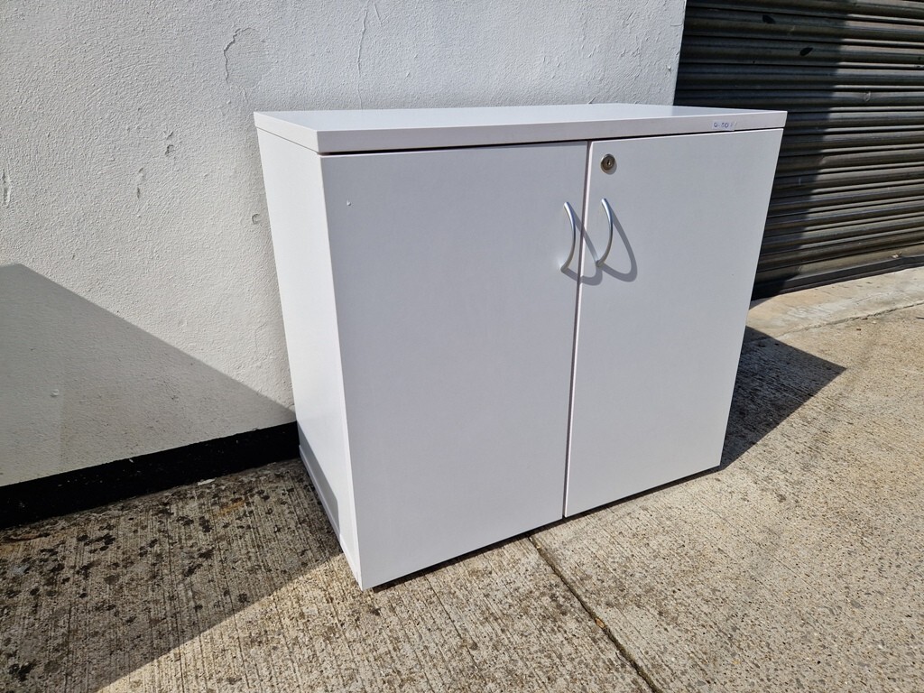White Double-Door Office Storage Cupboard – Lockable – 730h × 800w × 500d mm