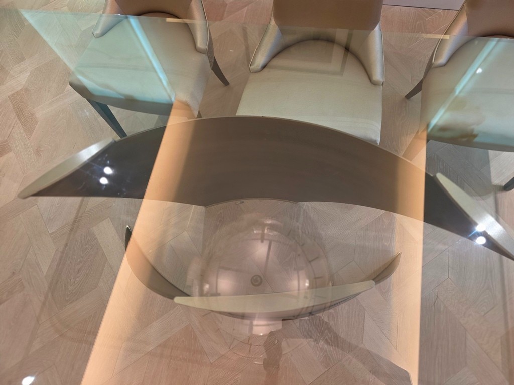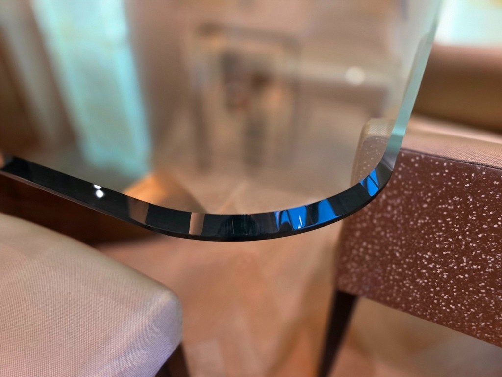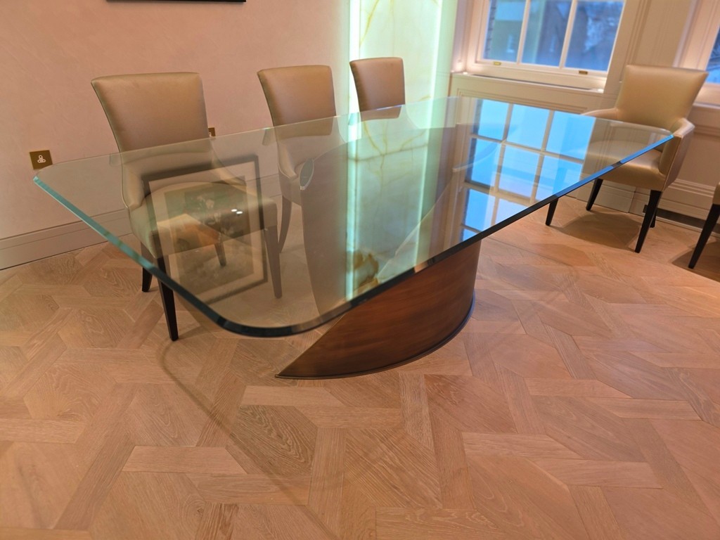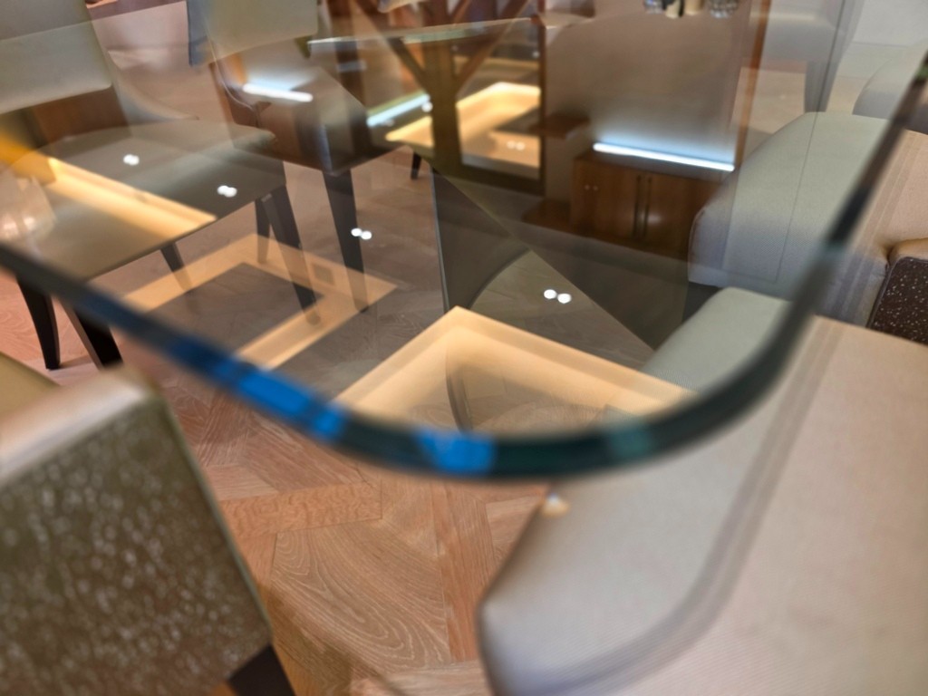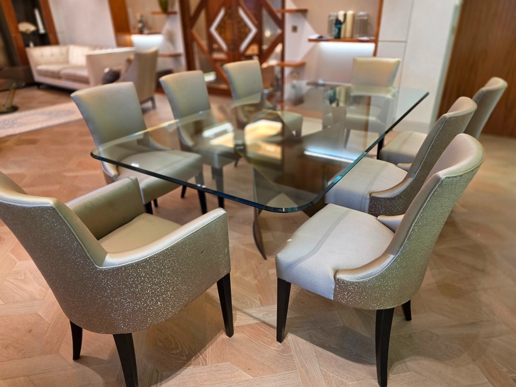- Architectural glass table — 2cm thick top for a premium, substantial feel